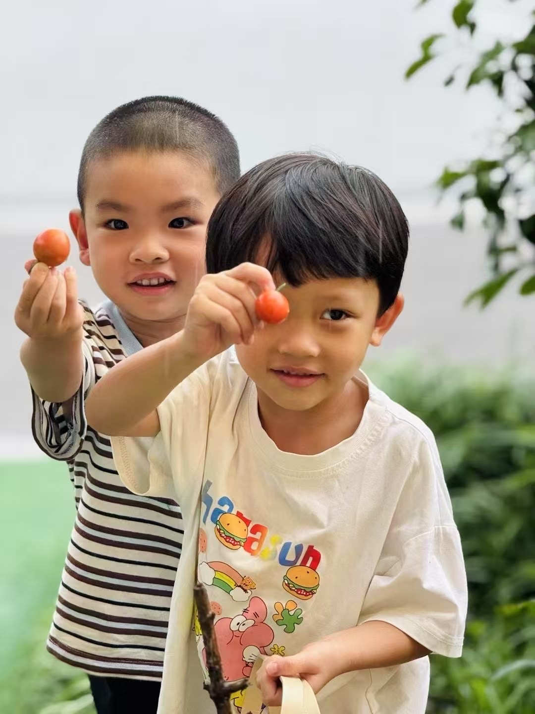 这片小小的种植区里,是孩子们最爱的自然课堂,小朋友们不仅了解植物生长的奥秘,更体会到劳动的快乐。一颗一颗的小番茄,不仅是丰收的果实,更是孩子们成长路上的“收获”。