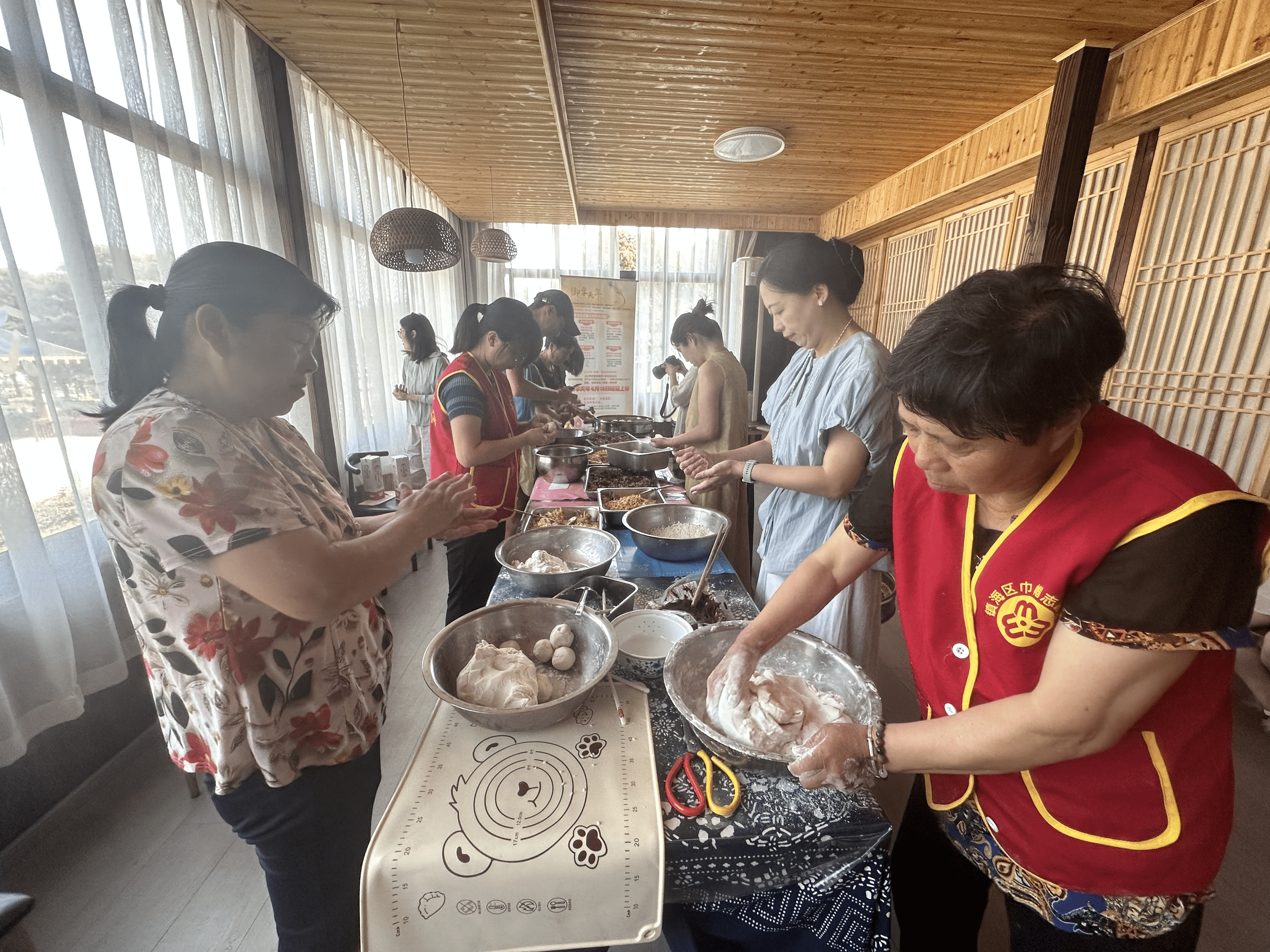 为弘扬乡村传统文化,助力妇女就业创业,九龙湖镇汶溪村妇联组织了一场别开生面的“老底子点心制作培训”。活动邀请本地资深点心师傅现场教学,吸引了20余名民宿女主人和农村失业妇女积极参与,共同学习这一承载着宁波人记忆的传统美食。