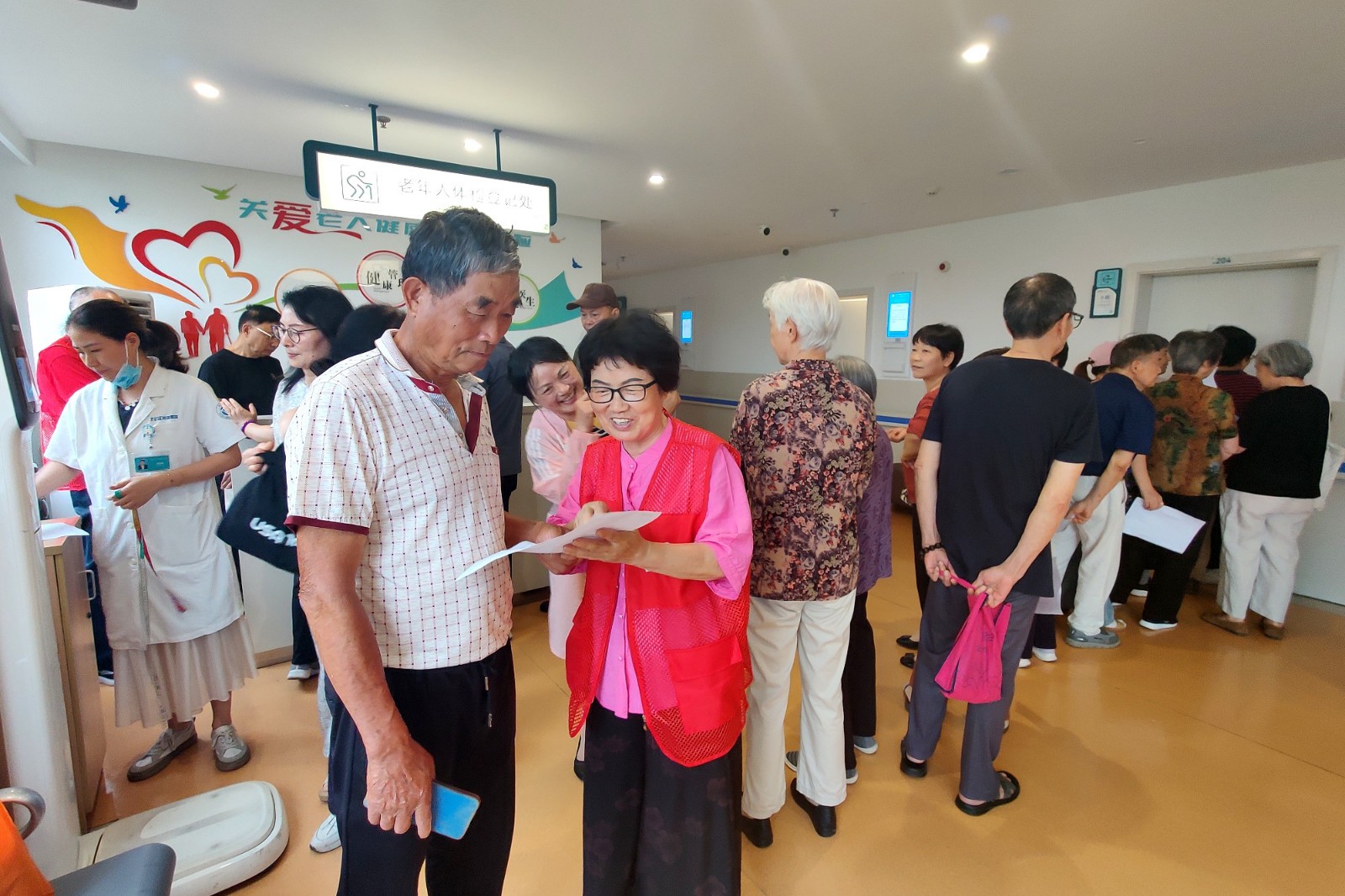 活动期间,一支由医护人员、退休医生、社区“暖阳”志愿者及社工组成的“医养合伙人”志愿服务队,成为了体检现场的一道亮丽风景线。他们分工明确、配合默契,从引导登记、协助检查到提供早餐、解答疑问,每一个环节都充满了对老年人的细心与关爱。“作为‘医养合伙人’项目的一员,能够参与到这次体检活动中来,为老人们提供一些力所能及的帮助,真的非常开心。”退休医生杨良国笑着说道,“在连续4天的志愿服务中,我也更加深刻地体会到了‘医养结合’对于提升老年人生活质量的重要性。”