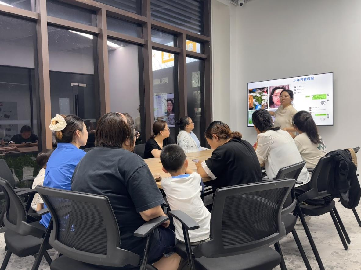 晚上7点活动开场,专业芳香老师为居民们带来了一场精彩的知识分享,简要介绍了芳香疗法的发展脉络,从古代人们利用植物香气进行保健疗愈,到现代科学对芳香疗法原理的深入研究,让大家了解到这一古老智慧在现代社会焕发出的新活力。紧接着着重讲解了不同精油的特性与功效,像薰衣草精油可舒缓神经、改善睡眠;薄荷精油能提神醒脑、缓解头痛;甜橙精油可调节情绪、带来愉悦感等。用通俗易懂的语言表达,居民们轻松理解,纷纷认真记录。
