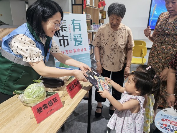 活动现场气氛热烈,居民们纷纷带着闲置书籍,有文学名著、儿童绘本、科普读物等。这些书籍在活动现场获得了新的 “身份”——“绿色通行证”,居民凭借一本符合要求的旧书,就能换取新鲜诱人的时令蔬菜。以书易蔬的模式,不仅实现了闲置资源的循环流转,更搭建起了环保与生活之间的桥梁。“家里孩子的绘本堆得都快没地方放了,正发愁怎么处理呢!” 居民王女士抱着刚换到的蔬菜,难掩欣喜,“现在好了,用旧书换到新鲜菜,家里清爽了,餐桌也丰盛了,还能让孩子明白环保的意义,这样的活动真是太贴心了!此外,工作人员还分享了诸多旧书循环利用的小妙招。例如,将旧书的精美书页剪裁下来,制作成书签、手工贺卡;把闲置的儿童绘本捐赠给乡村学校,让知识传递到更远的地方。这些实用的小妙招,让居民们对旧书的循环利用有了全新的认识。