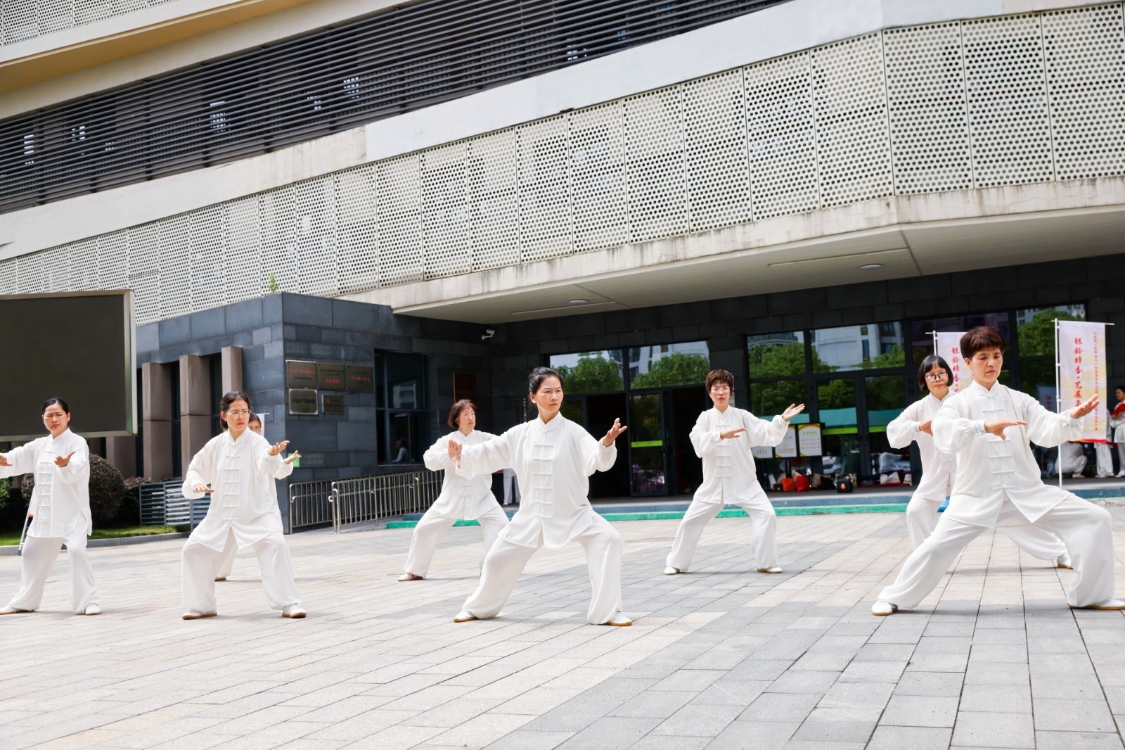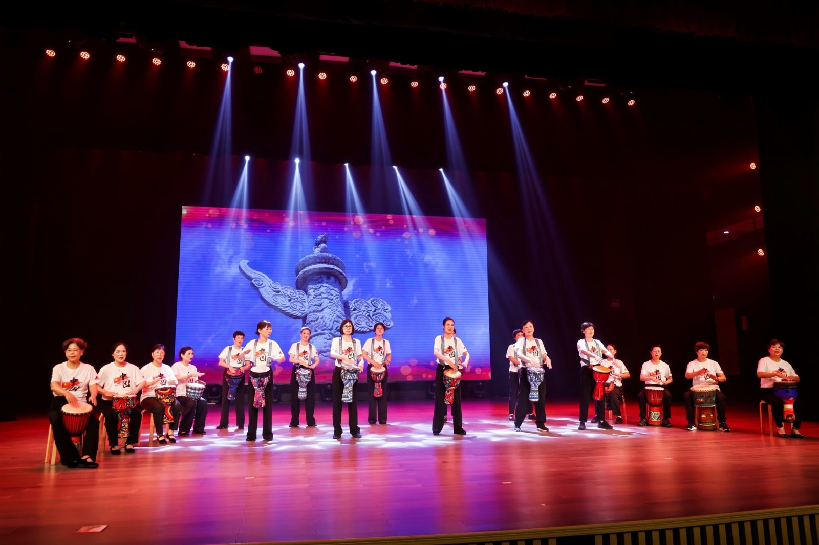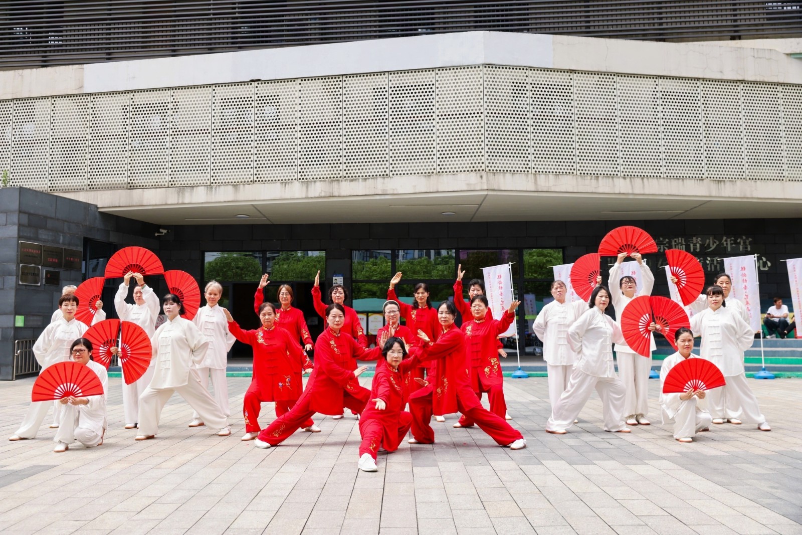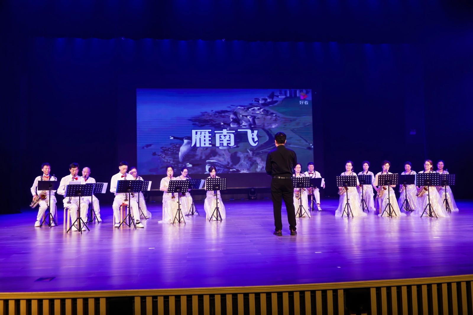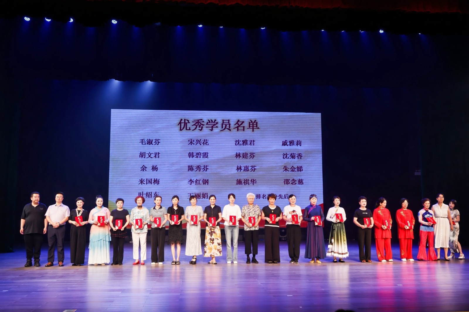 活动现场,场外同步开展的太极拳展示表演率先吸引目光——学员们随乐起舞,动作整齐划一、刚柔并济,为活动营造了浓厚文化氛围。汇演在气势磅礴的腰鼓表演中正式拉开帷幕,20个涵盖舞蹈、合唱、独唱、器乐演奏、越剧等多艺术门类的精彩节目依次上演:风格各异的舞蹈跃动活力,深情动人的合唱传递温暖,二胡与萨克斯的旋律流淌经典,韵味十足的越剧选段再现传统魅力,全方位展现了老年学员的多才多艺与青春姿态。