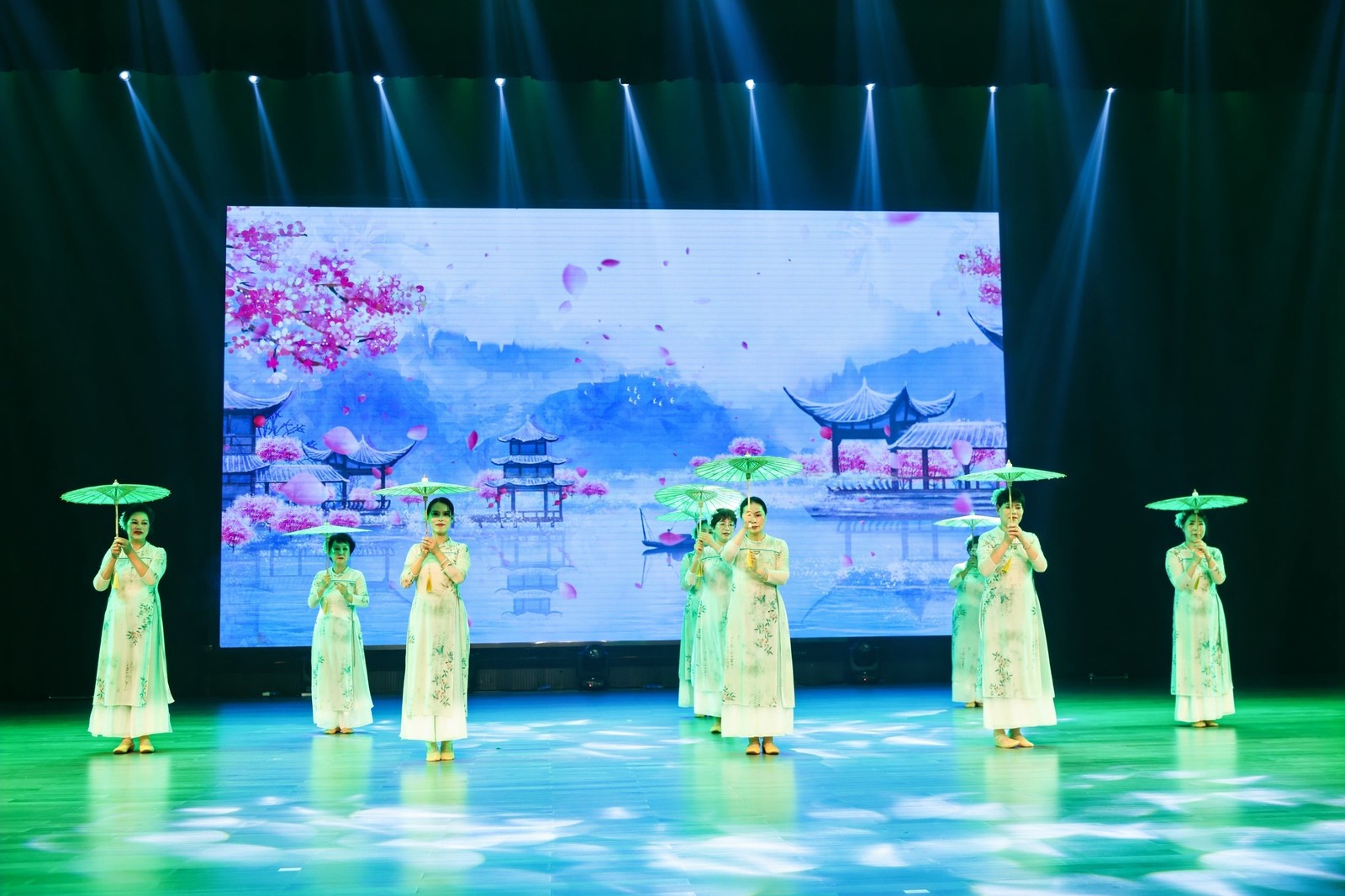 2025年6月25日下午,由江北区教育局、庄桥街道办事处、甬江街道办事处指导,庄桥街道成人文化技术学校、甬江街道成人文化技术学校主办,江北区新尤德培训学校承办的“银龄樟香·艺展甬江”教学成果汇演,在江北区青少年活动中心盛大启幕。来自两街道各校区的老年学员、教师代表及社区居民共380余人齐聚一堂,共同见证老年学员一学年的学习成果,充分展现新时代老年人积极向上、热爱学习的精神风貌。
