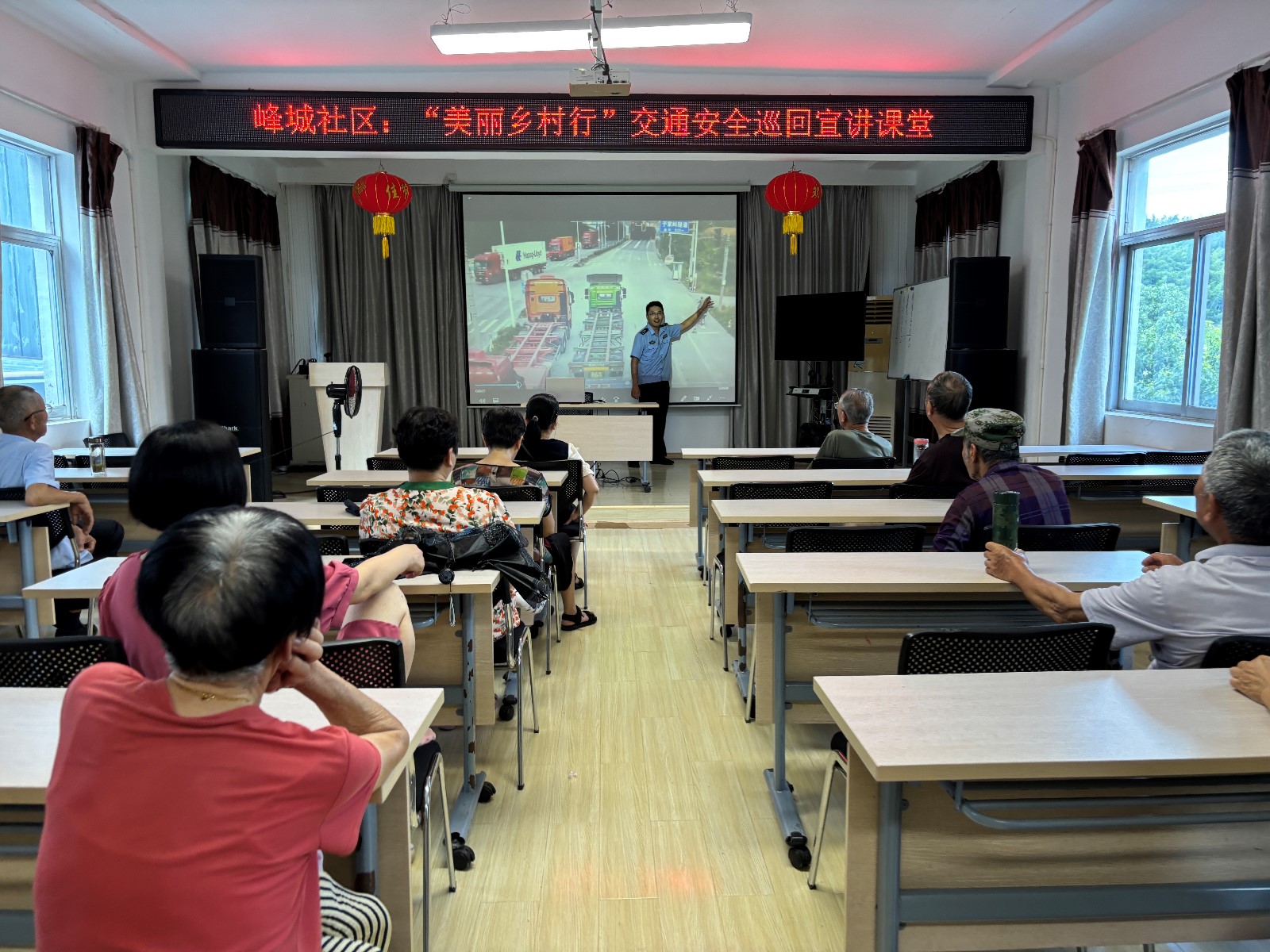 “大家看,这起发生在上白路门浦村口的一起交通事故,就是因为电动车驾驶人未佩戴安全头盔、且车速过快与公交车相撞,导致驾驶人死亡的惨痛事故……”近日,一场别开生面的 “美丽乡村行”交通安全巡回宣讲课堂在峰城社区活动中心开讲。来自白峰交警中队的王警官用鲜活的案例和通俗易懂的语言,为辖区居民上了一堂生动的交通安全教育课。