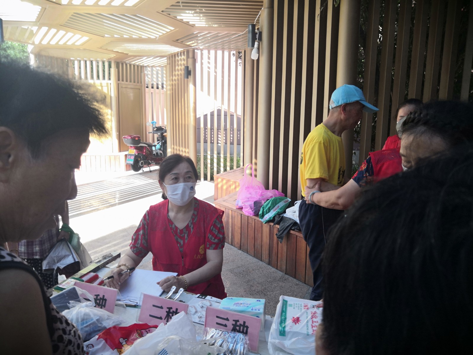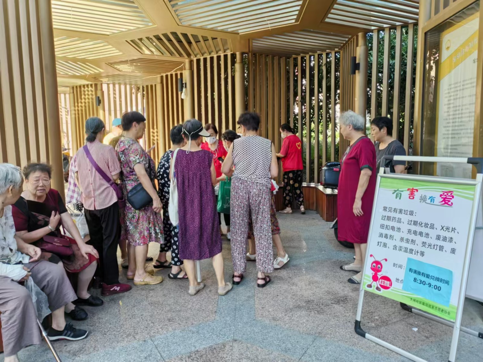 活动当天,蜜邻微亭前人头攒动,居民们排起了长长的队伍,有序地等待着兑换。大家手里拿着准备好的有害垃圾,脸上洋溢着期待的笑容。微网格长们热情地接待每一位居民,仔细检查他们带来的有害垃圾,如废旧电池、过期药品、废灯管等。在确认无误后,便为他们发放精心准备的小礼品。这些小礼品虽然看似微小,但却承载着社区对居民参与垃圾分类的鼓励和感谢。