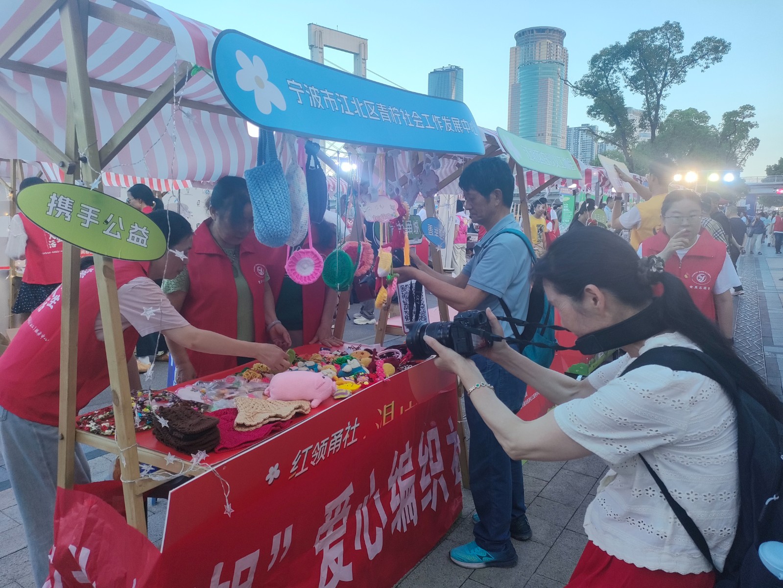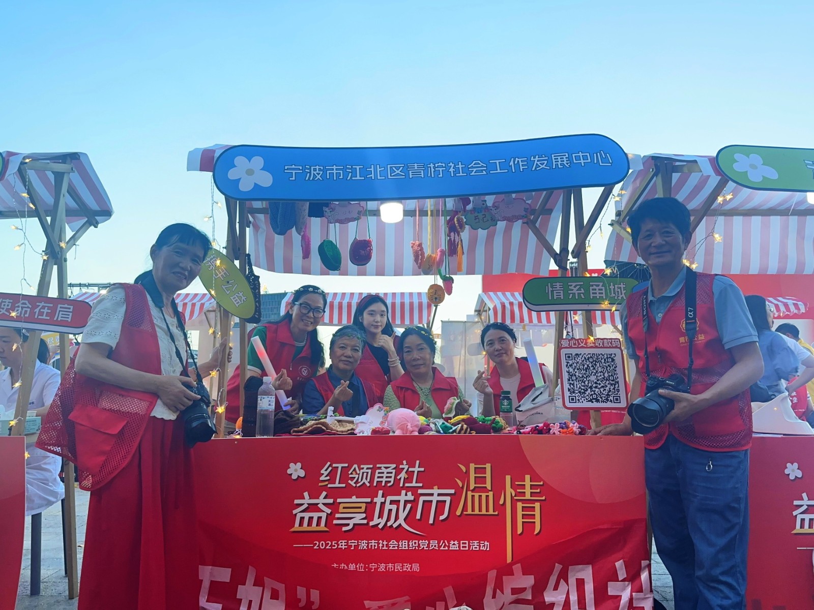 6月28日晚上18:00,江北区老年大学巧姐爱心社借助江北区青柠社会发展中心平台,响应宁波市社会组织总会、宁波市甬尚慈善社工服务中心号召, 积极参与2025年宁波市"党员公益日"活动,于江北老外滩共筑 "红领甬社,益享城市温情" 的公益风景线。