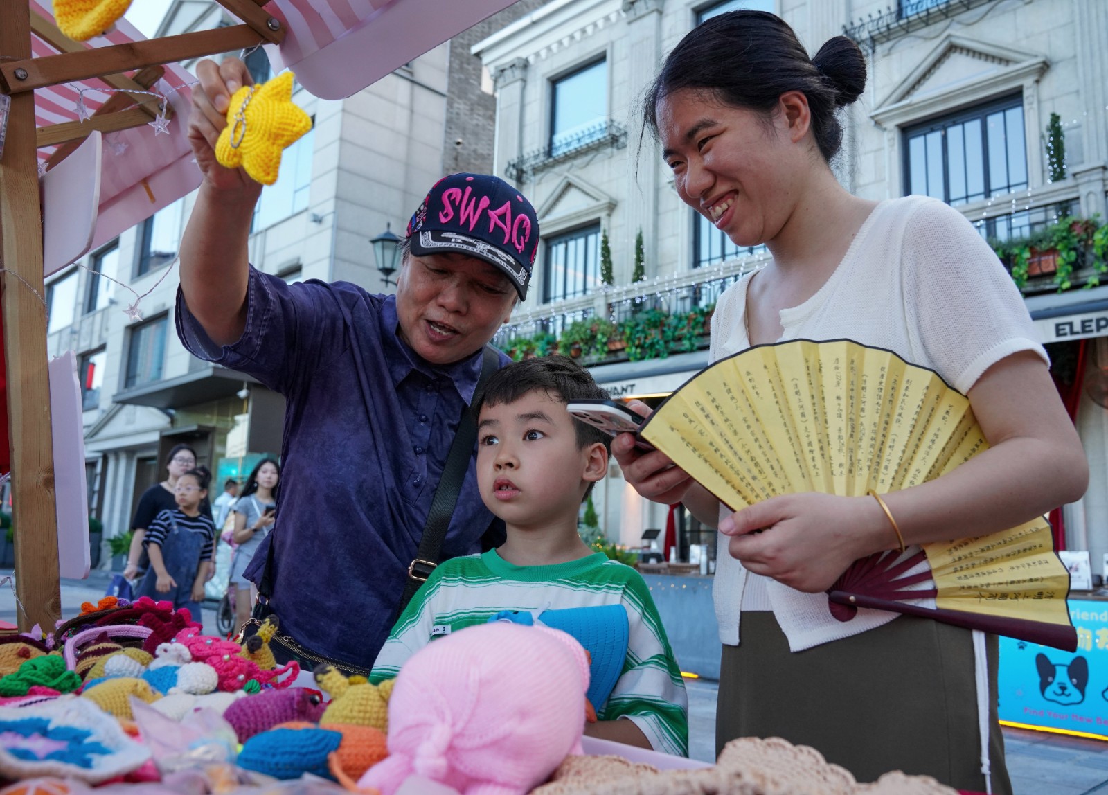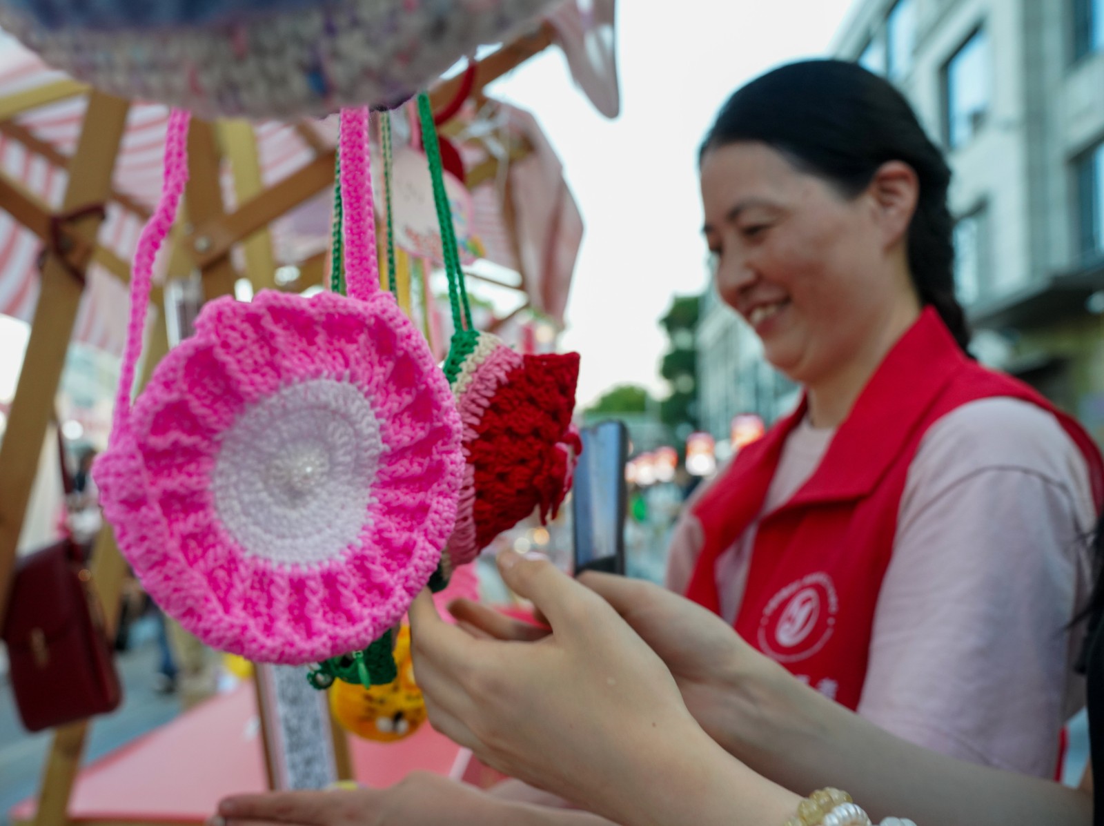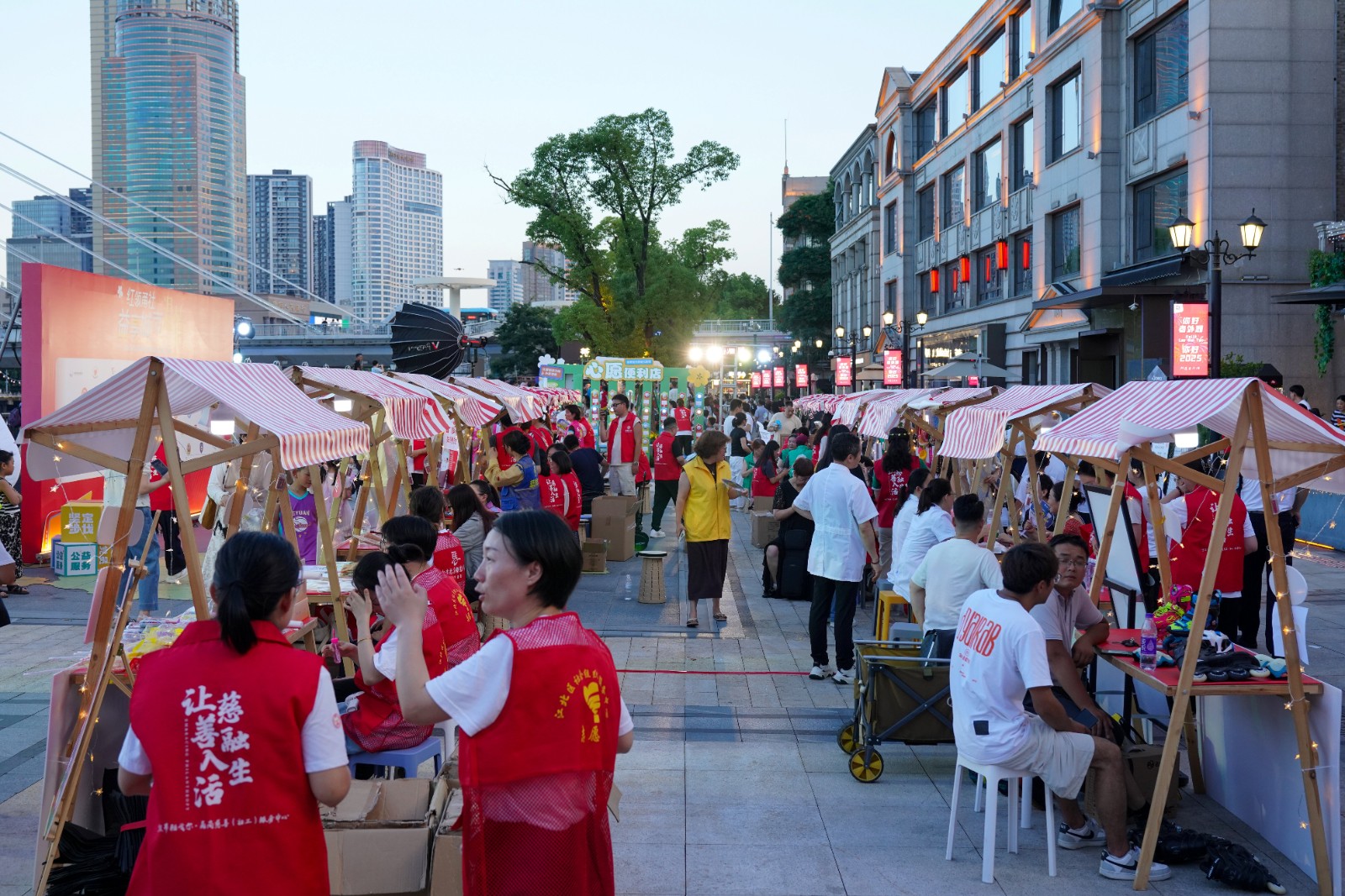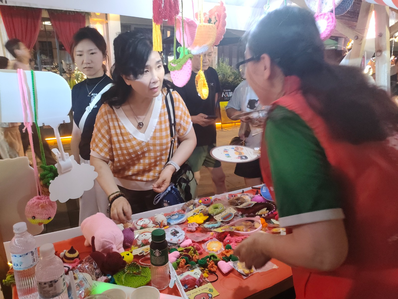 华灯初上,老外滩早已人潮涌动,这是一场规模较大的爱心公益集市活动,来来往往的市民朋友们驻足观赏着每一个精心准备的摊位;巧姐爱心编织社的每件手工艺品都蕴藏了一份沉甸甸的爱,承载了温暖与希望,每一笔善款将汇聚成一股暖流,帮助每一位需要被关怀的弱势群体。虽然晚上的气温很高,但丝毫不影响巧姐们耐心细致地讲解义卖商品背后的温暖故事。