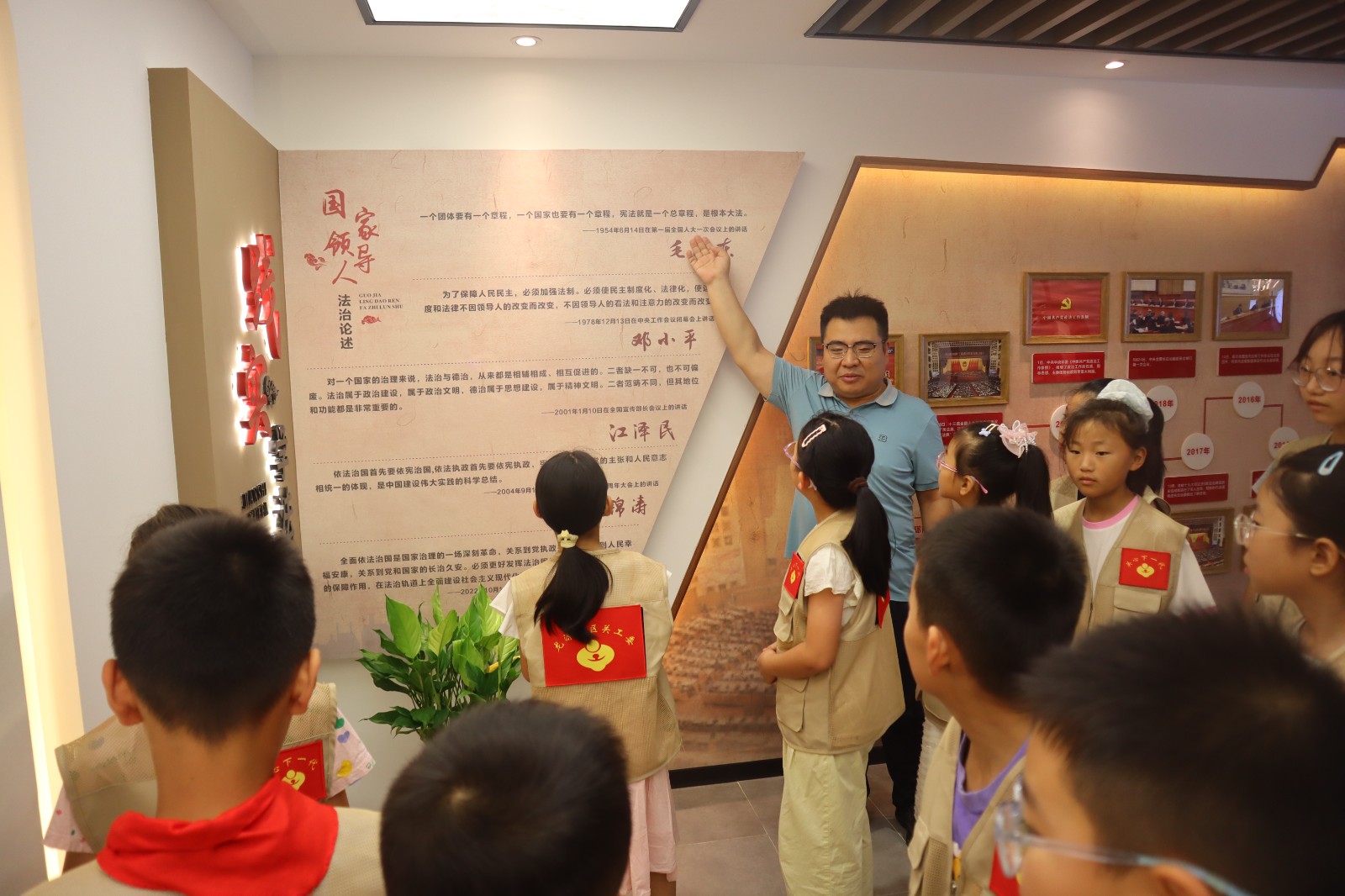 在九龙湖法治馆,孩子们开启了一场穿越时空的法治之旅。馆内通过图文展示、视频讲解、实景模拟等多元形式,系统呈现了从古代律法到现代法治的发展脉络。讲解员结合《宪法》《民法典》等法律条文,以校园欺凌、网络安全等贴近生活的案例为切入点,引导青少年思考“法律与生活的关系”。