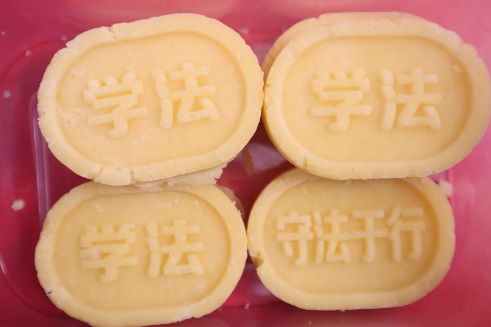 随后,亲子家庭来到月波非遗工坊,化身“法治烘焙家”。非遗传承人师傅在教授传统糕点制作技艺时,巧妙融入法治元素:“揉面要讲究力度均匀,就像法律面前人人平等;烘焙火候的把握,如同我们在生活中要守住行为底线。”家长与孩子共同制作印有“尊法、守法、学发、用法糕点,在温馨互动中学习食品安全法规、劳动权益保护等知识让法治教育从课堂延伸至家庭。