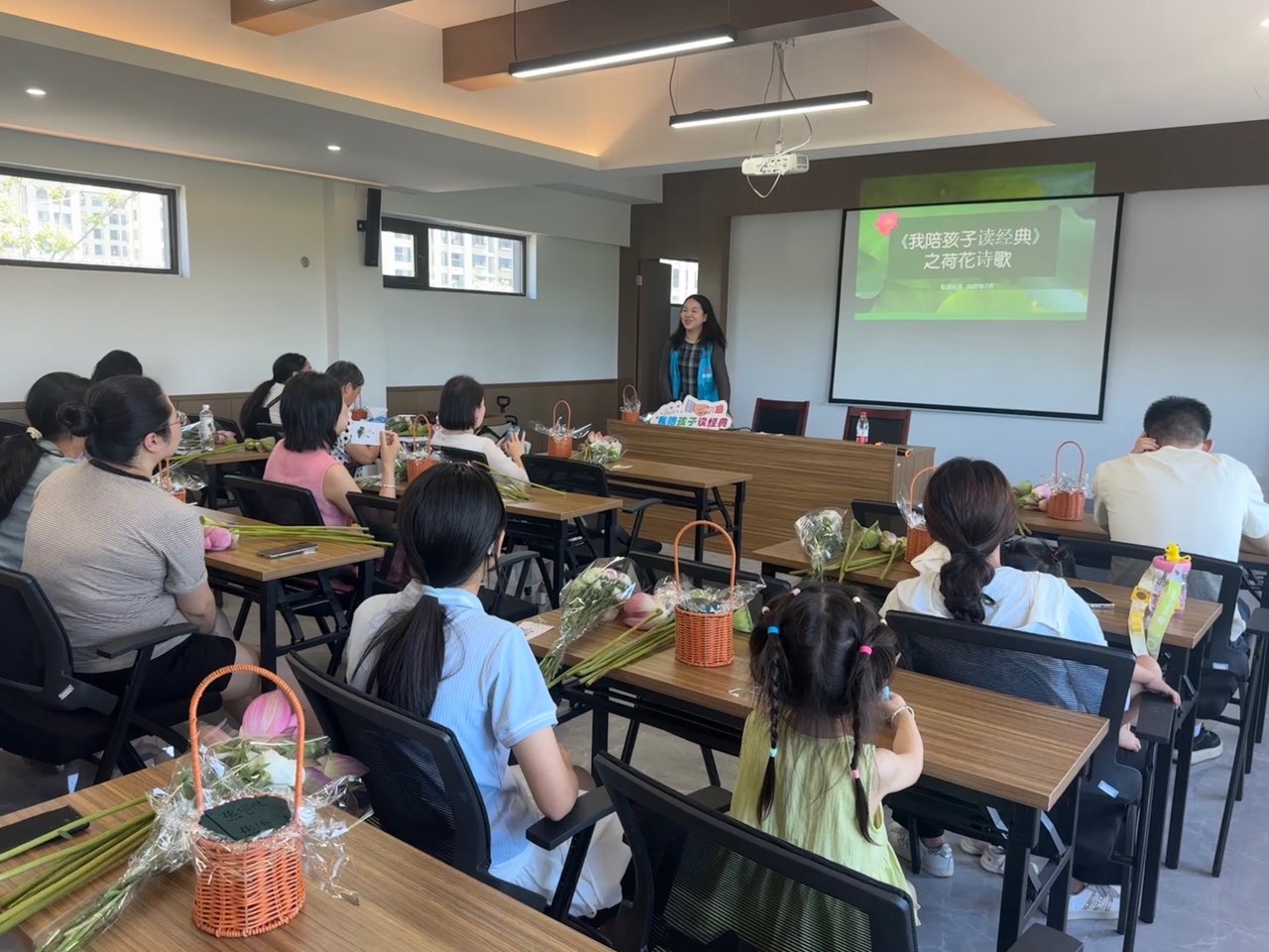 活动以 "莲" 为媒,巧妙地将传统文化与廉洁教育紧密相连。在亲子诵读 "莲" 的经典古诗环节,许多家长带着孩子,手捧诗集,声情并茂地诵读着 "出淤泥而不染,濯清涟而不妖" 等千古名句。孩子们稚嫩的声音中,透着对莲花高洁品格的向往。网格员穿梭在亲子之间,不时加入他们的讨论,和家长们交流如何通过这些古诗,让廉洁的种子在孩子心中生根发芽。看着孩子们专注的眼神,这样的传统文化熏陶,正潜移默化地影响着他们的价值观。