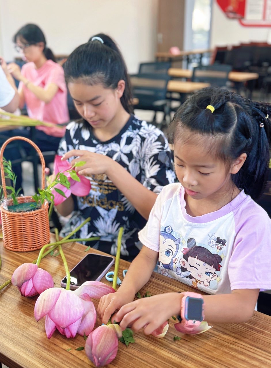 随后的插花艺术环节,更是将 "莲" 的诗意美转化为可触摸、可创作的实践体验。网格员协助工作人员为亲子们准备好莲花、荷叶等插花材料,看着大家发挥创意,将一支支莲花巧妙搭配,插出美丽的作品。有的孩子小心翼翼地摆弄着莲花的枝叶,生怕破坏了它的圣洁;有的家长则借机教导孩子,莲花的廉洁品格就体现在它的每一片花瓣、每一根茎秆中。在这个过程中,廉洁理念不再是书本上的文字,而是变成了手中可触摸的莲花,走进了孩子们的生活。