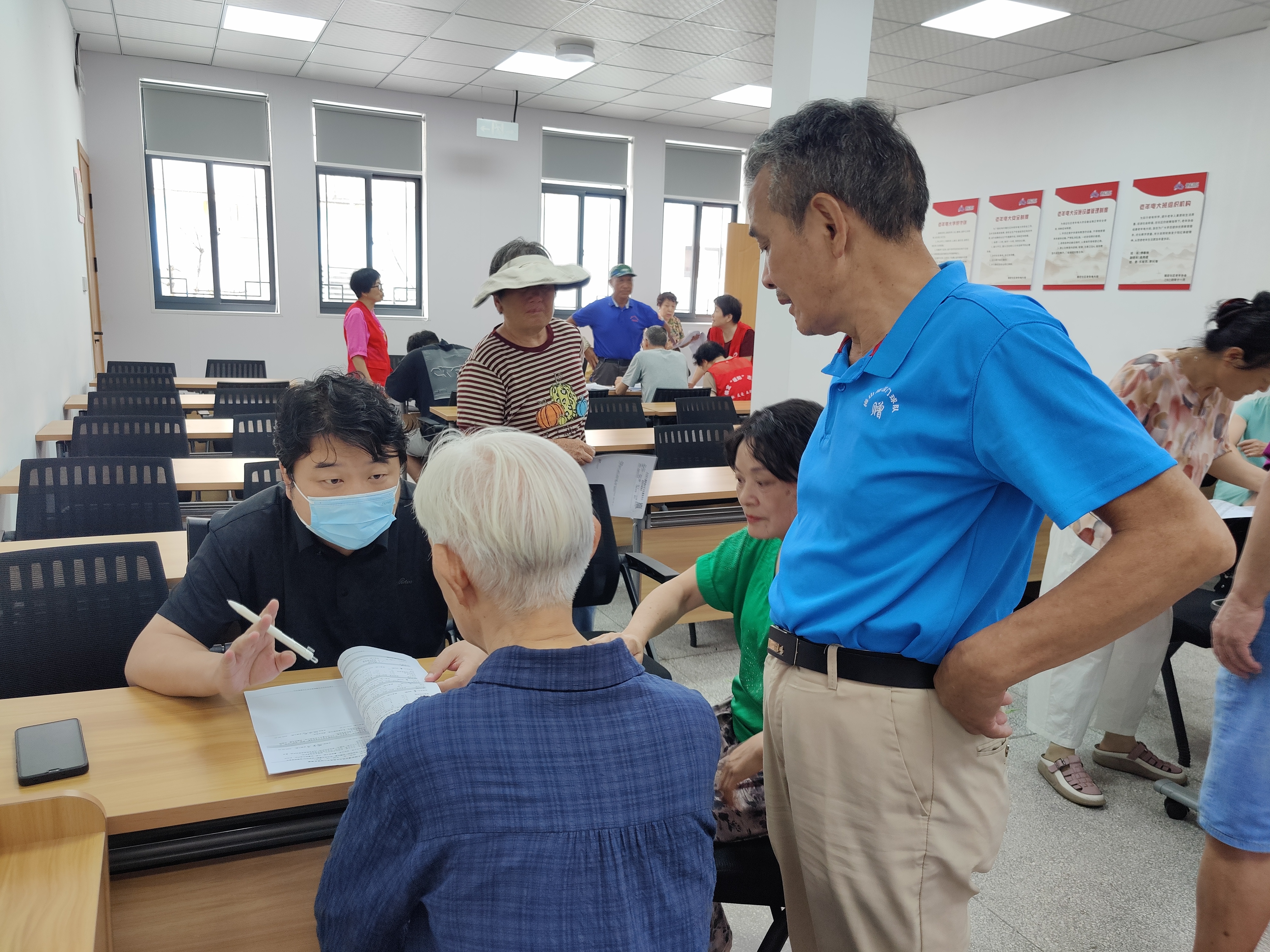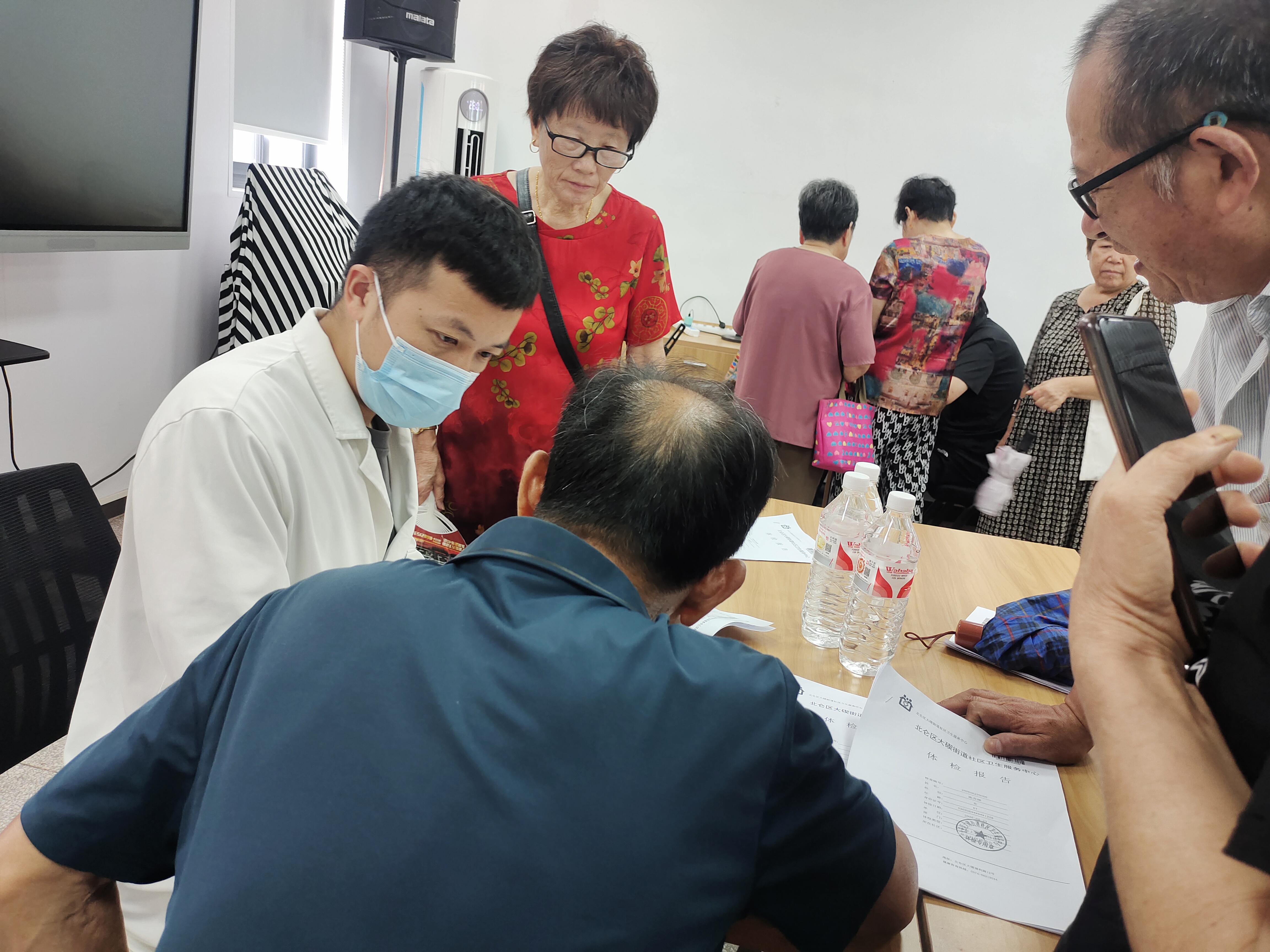 78上午,镇定社区医养合伙人项目携手大碶街道社区卫生服务中心的在职医生及北仑人民医院退休医生走进社区,为老年人解读体检报告,提供专业的健康咨询服务。
