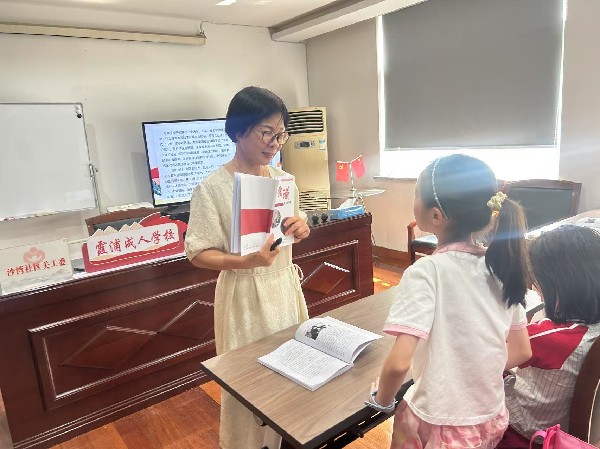 2025年7月10日,沙湾社区假日学校开展道德教育主题活动。社区关工委邀请五老志愿者郑雪亚老师,为暑期在此学习的青少年们讲述霞浦街道沙湾社区石红雨、赵顺忠、乐军等身边好人的先进事迹,以榜样力量厚植未成年人道德根基。