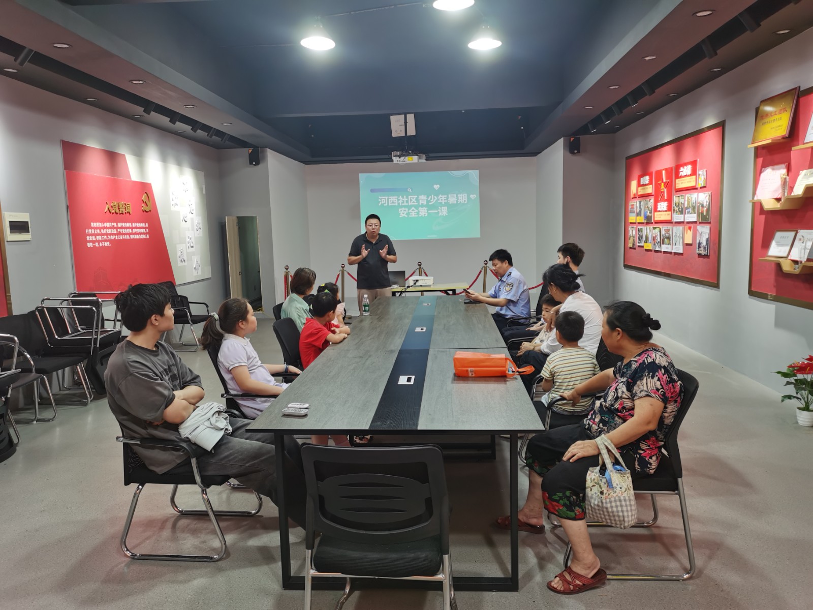 学校放假,社区开学。暑假伊始,为了使青少年能过上一个平安、快乐的假期,77午,河西社区暑期安全第一课正式开讲,在寓教于乐的氛围中,帮助青少年增强安全知识,提高自我保护能力。