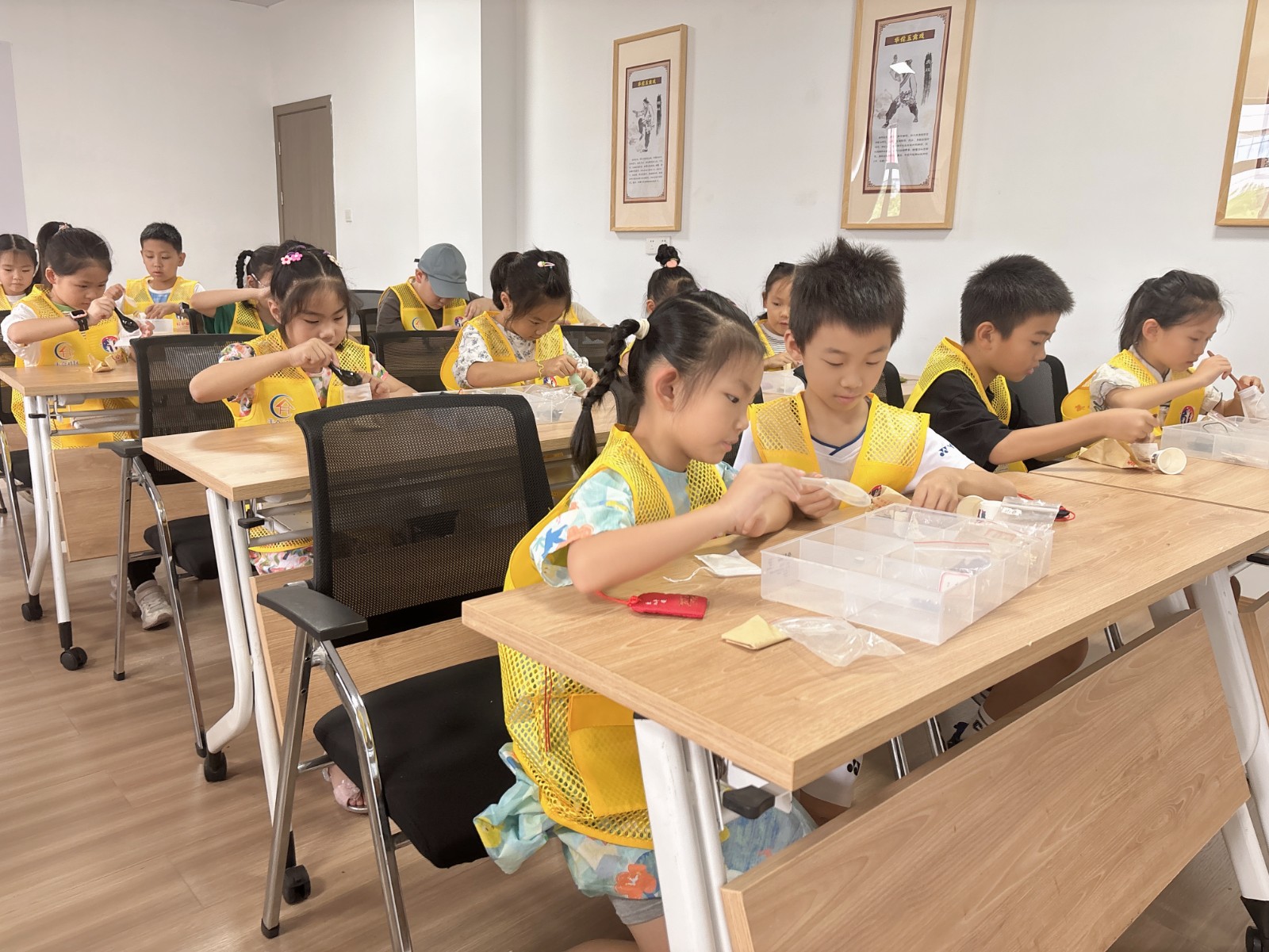 随后,亲子家庭移步至中草药制作工坊,亲身体验了中草药的制作过程。在新阶层人士、寿全斋第八代非遗传承人张国甫老先生的指导下,孩子们手持泛丸匾,脚踩碾船,认真碾磨药材,从称量、切药、碾药到封装,体验水泛丸的制作过程,每一步都做得有模有样。张老师还现场互动问答,普及家庭用药安全知识,让孩子们在动手实践中学习到了实用的健康常识。这种亲身的实践体验,不仅让孩子们对中草药有了更深入的了解,也让他们感受到了传统技艺的魅力。