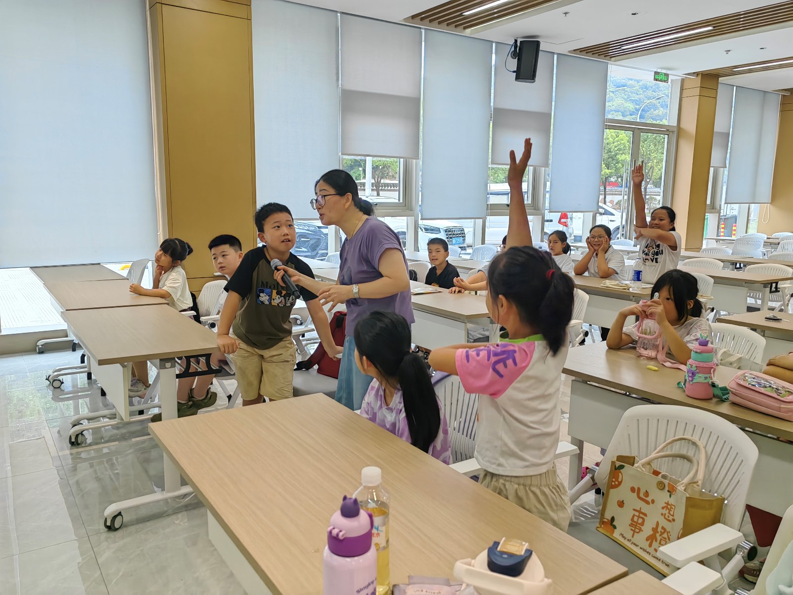 暑期假日学校的黎秋桐兴奋地分享:以前觉得成语都是书本上冷冰冰的字,今天又是画又是演,感觉成语就在我们身边,比玩游戏还有意思!