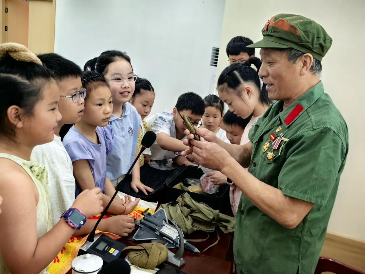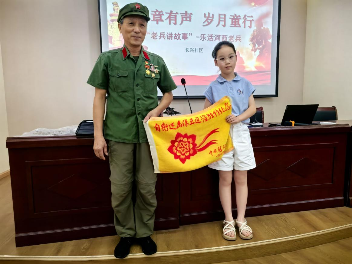 近日,长兴社区开展童心协力,社彩纷呈暑期青少年成长计划之勋章有声  岁月童行老兵讲故事乐活河西老兵俞爷爷展示老照片与军功章,回忆边境戍边岁月:雪夜岗哨的热馒头、书信里的牵挂、退伍时战友的敬礼……朴实话语中,孩子们读懂了"家国"的分量。