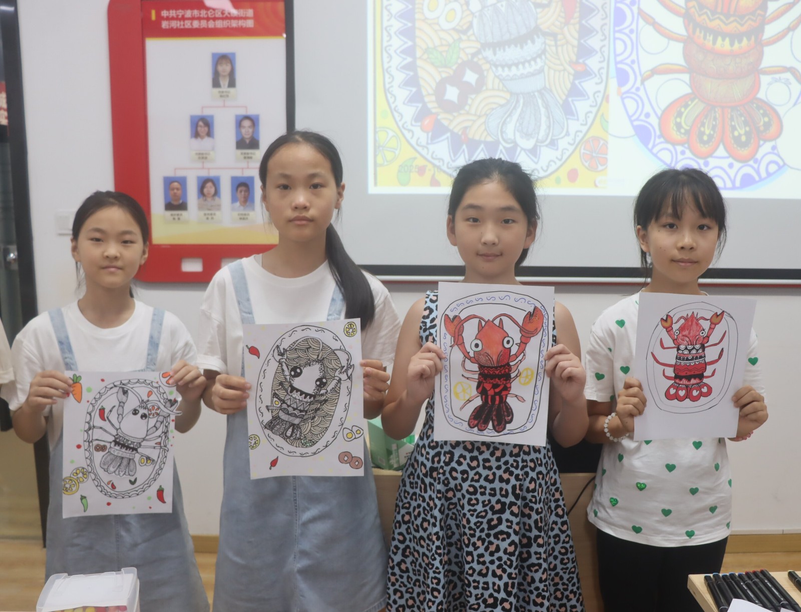 岩河社区:童心绘虾趣 彩线舞缤纷——假日学校开展趣味线描创作课