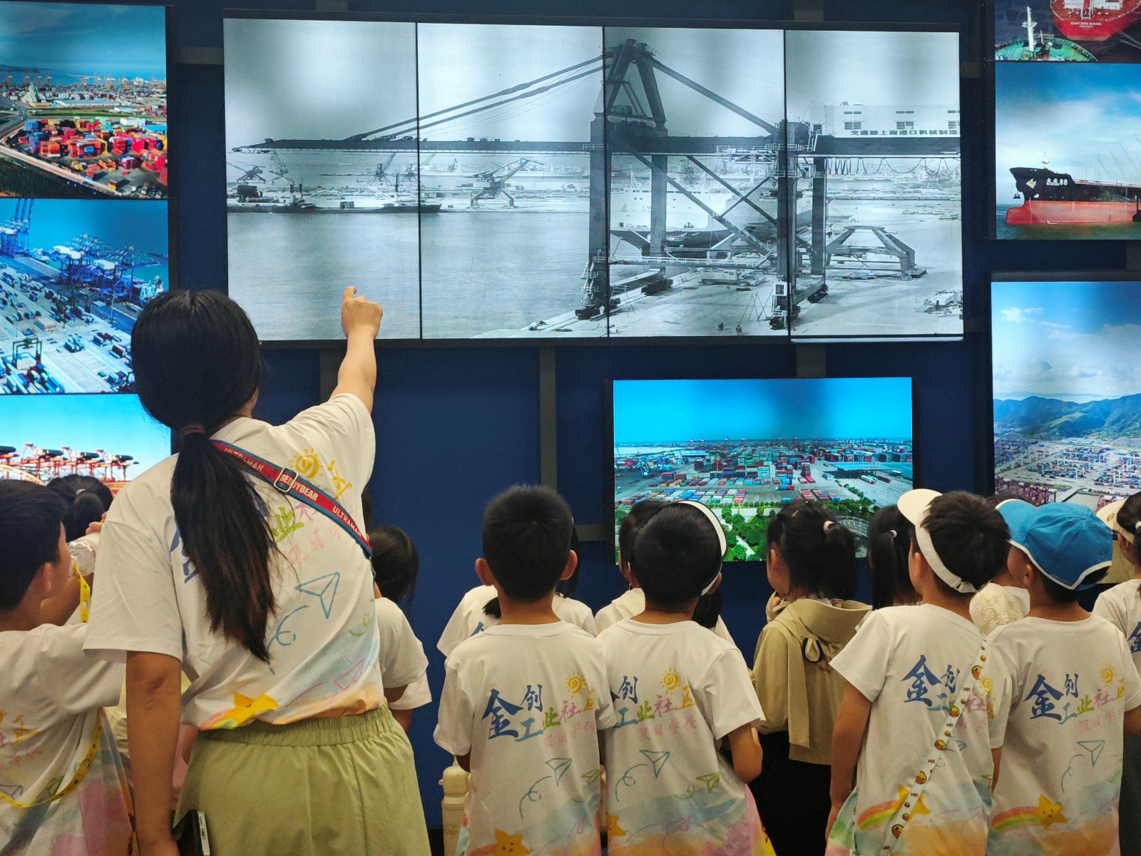 7月10日下午,宁波中国港口博物馆迎来了一群活泼可爱的小小“探索者”,梅山成校教学点金创工业社区“蓝湾童心”假日学校的40余名学生开启“蔚蓝探秘”研学之旅,沉浸式体验解码千年港口的文明基因,在心中播撒海洋强国的梦想种子。