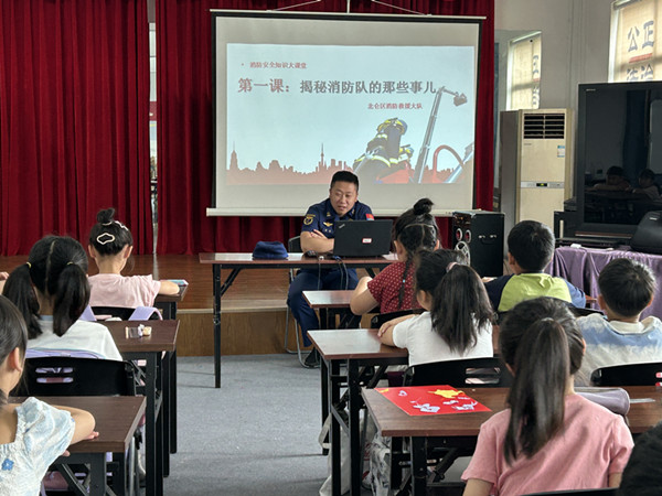 增强青少年消防安全意识,近距离了解消防员的工作日常,7月17日,陈华浦社区假日学校邀请宁波市消防救援支队周楠为孩子们带来“揭秘消防队的那些事”主题讲座