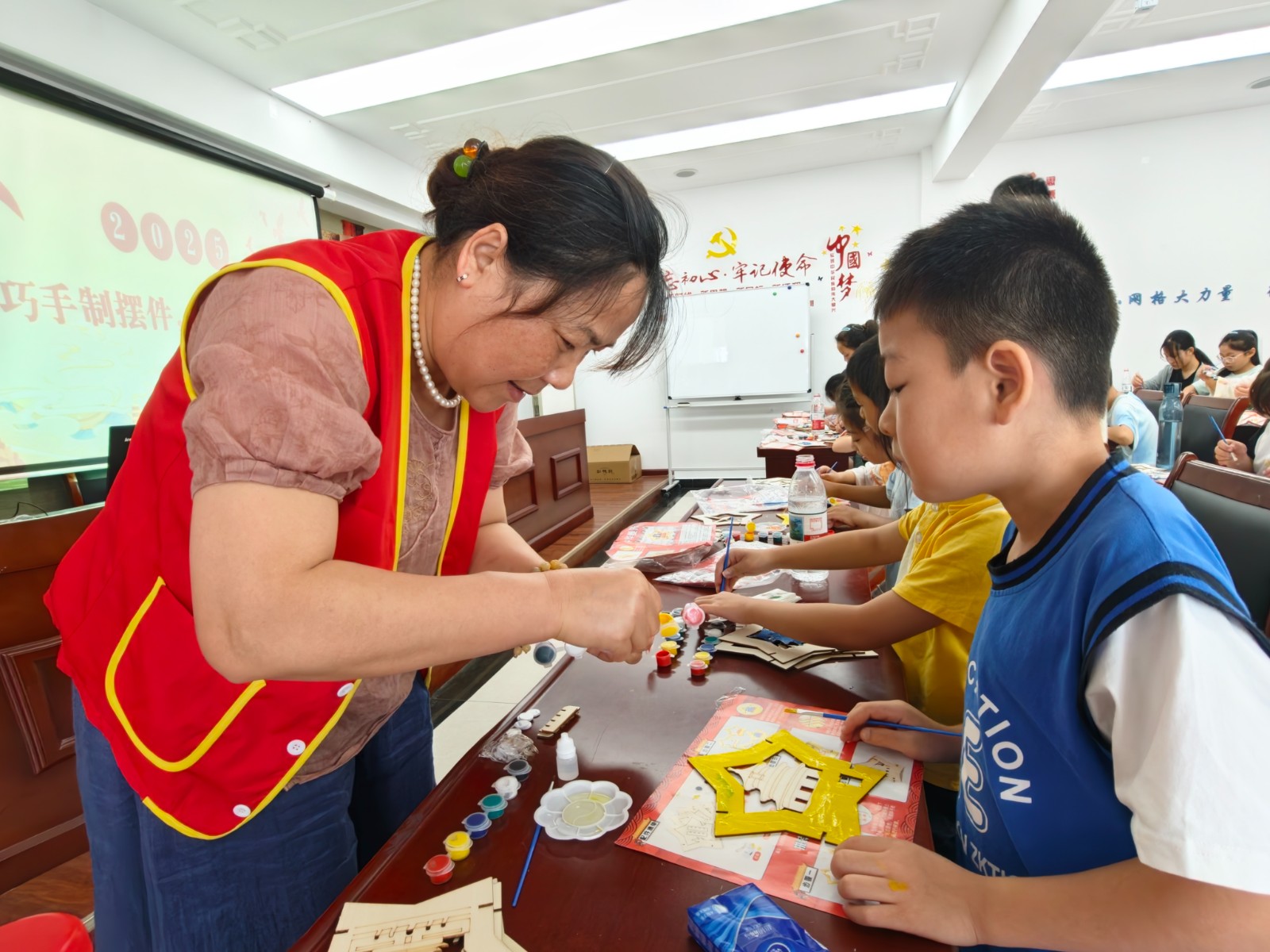 为厚植青少年爱国情怀,九龙湖镇思源社区联合镇海区红枫志愿者第2分会,开展 “巧手制摆件 红心向祖国” 爱国主题教育手工活动,30 余名小朋友在“五老”志愿者的指导下,亲手制作带有中国地图、天安门城楼元素的手工摆件,在趣味实践中感悟家国情怀。