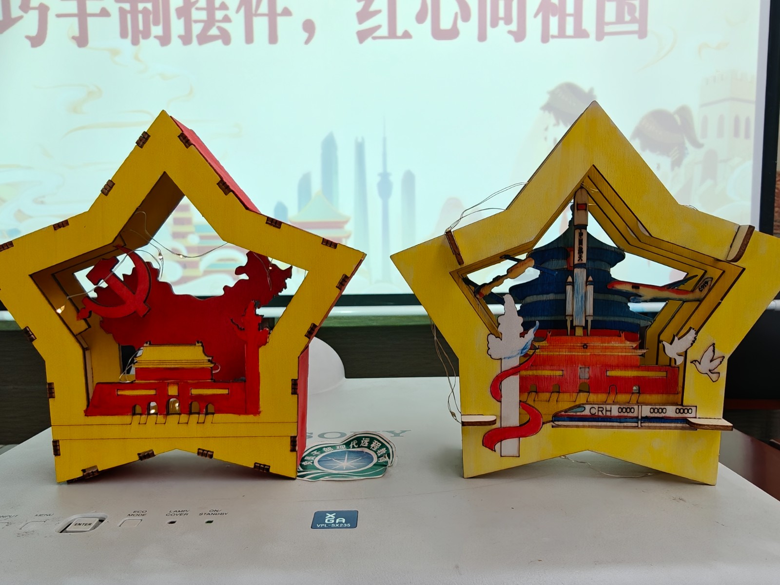 待颜料干透后,刘老师指导孩子们将 LED 小灯条固定在摆件背面。当开关按下,柔和的光芒从镂空图案中透出,照亮鲜红的地图和庄严的城楼,孩子们纷纷发出惊喜的赞叹。“这是我做的‘中国’,我要把它送给爷爷!”7 岁的小林举着作品自豪地说。