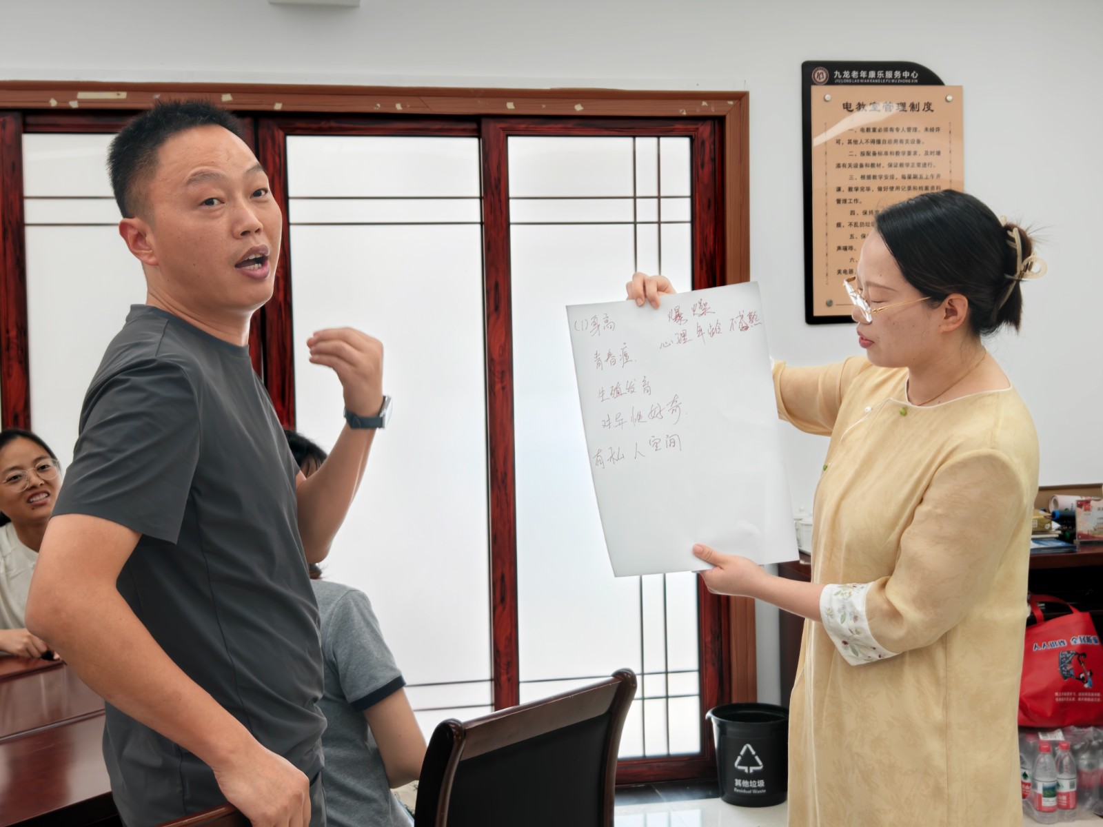 在实操演练环节,家长们分成小组,围绕 “孩子考试失利后”“孩子想买昂贵玩具被拒时”等场景进行角色扮演。一位妈妈在模拟 “孩子沉迷游戏” 的沟通场景后坦言:“原来我一味指责‘你怎么又在玩游戏’,只会让孩子关紧心门。刚才试着用讲师教的‘先共情再引导’,说‘妈妈知道游戏很有趣,不过我们约定好的时间到了,你觉得接下来做什么呢’,孩子的态度明显缓和了,这才是有效沟通的样子。”龚老师则在旁实时点评,纠正家长们的沟通偏差,指导大家掌握 “倾听 — 共情 — 协商” 的沟通三步法。