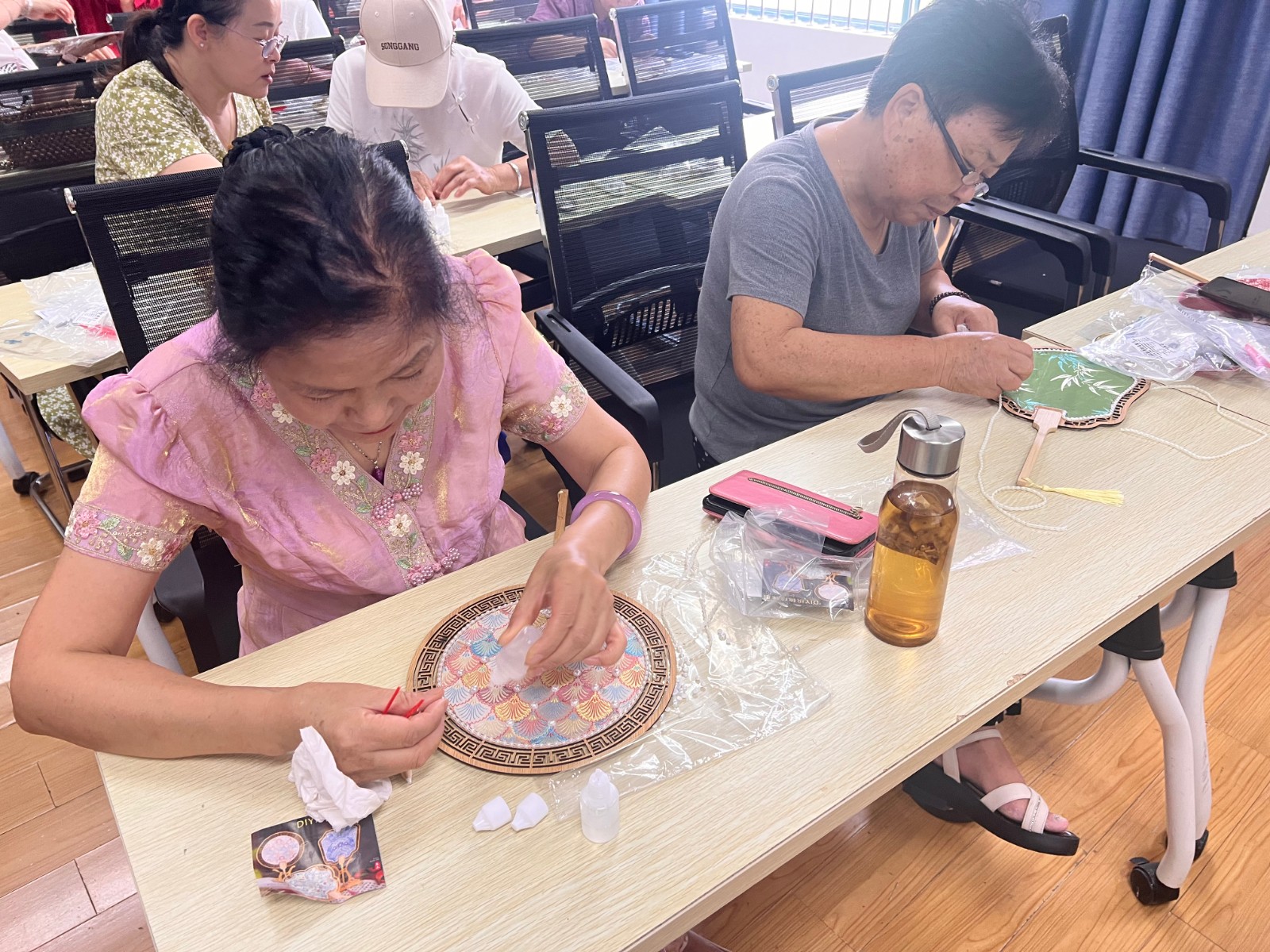 丰富社区老年人的精神文化生活,提升晚年幸福感与归属感,兴庄路社区特策划此次非遗手工体验活动。活动聚焦国家级非物质文化遗产——苏州宋锦,旨在让老年群体近距离接触这一承载千年智慧与美学的“锦绣之冠”。通过亲手制作宋锦珍珠扇子,不仅能为他们的日常生活增添雅趣和实用乐趣,更能以轻松愉悦的方式促进手脑协调、激发创造热情,并在温馨的集体氛围中增进社交互动。