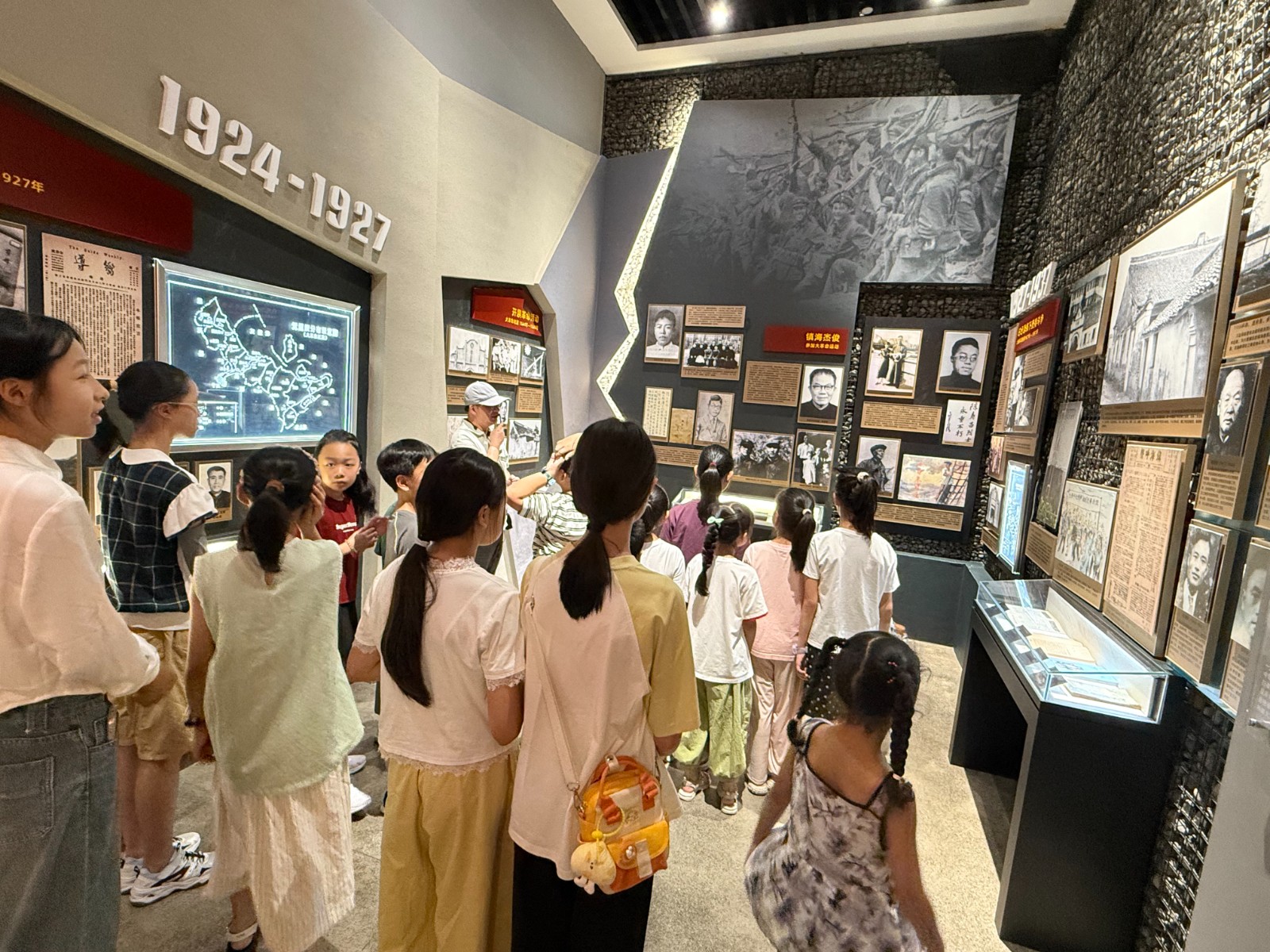 活动中,陶艺老师讲解陶艺制作的基本技巧,孩子们围坐桌前,在老师指导下揉泥、塑形,用小手捏出五角星、小红船等充满红色元素的作品,体验传统技艺的同时,感受创作乐趣。随后,大家前往九龙湖红色陈列馆。在讲解员带领下,孩子们认真聆听革命先辈的英雄事迹,观看珍贵的历史图片和实物展品,了解当地的红色历史。一张张旧照片、一件件老物件,让孩子们仿佛回到那段艰苦卓绝的岁月,深刻体会到如今幸福生活的来之不易。