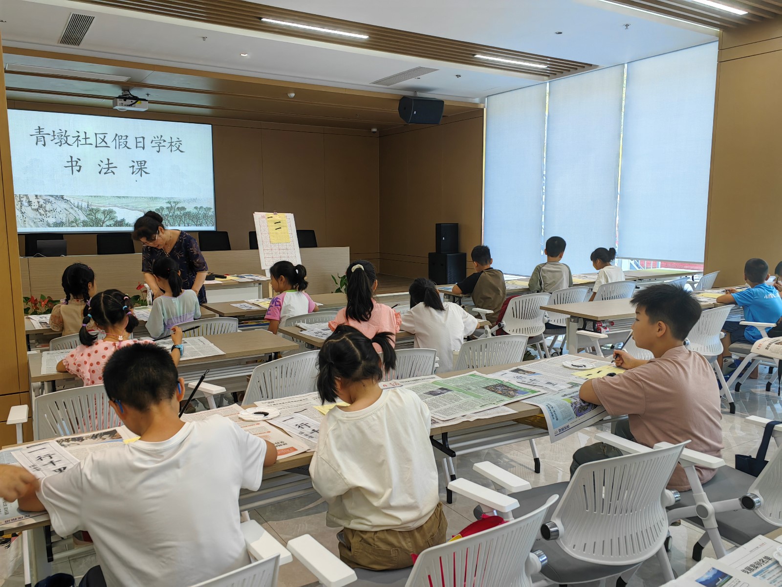 为丰富青少年暑期文化生活,7月28日,青墩社区党群服务中心暑期假日学校开设了公益书法课堂,邀请社区经验丰富的“五老”志愿者俞亚萍、严海勇担任指导老师,为社区青少年提供了一个接触传统文化、充实假期的有益平台。