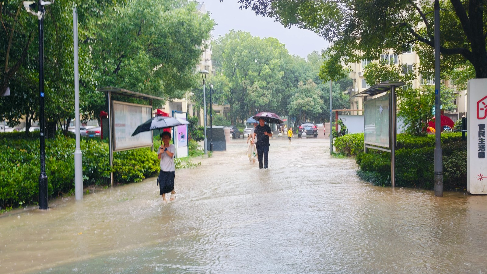 风雨呼啸的早上广厦社区服务中心电话不断。网格员周静君刚放下听筒,又匆忙带上雨具出门,和同事们分头行动,挨家挨户排查险情。当周静君一行来到地势最低洼的路口,浑浊的积水已接近膝盖。透过雨幕,她看到几个楼道口,几个小脑袋正焦虑地向外张望——他们的父母因工作无法抽身,孩子们独自在家,正因眼前这片难以逾越的“汪洋”而手足无措。