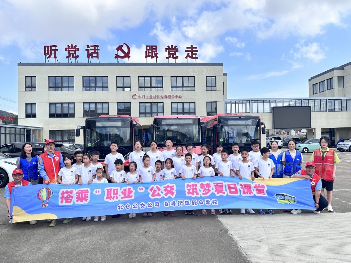 7月9日,北仑区白峰街道2025年假日学校正式开班。一辆由北仑公交公司支持的定制“职业体验巴士”载着兴奋的孩子们驶向城市各处,开启以“外出研学”和“职业体验”为核心的夏日课程。