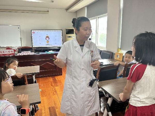 我们的身体如同精密工厂,藏着数不尽的奥秘。从构造到生长,再到健康防护,处处充满惊喜。 课堂一开始,俞医生就用这句形象又充满悬念的话抓住了孩子们的注意力。随后,俞医生结合PPT给孩子们讲解了人体的每个器官和作用:心脏是人体最重要的内脏之一,我们依靠心脏的跳动维持全身血液的流通;胃主要负责食物的消化,将营养成分提供给我们的身体;肝是人体解毒的重要器官;肺是我们重要的呼吸器官,身体的协调运作可以让我们拥有健康稳定的生活。“医生阿姨,为什么吃多了会肚子疼呀?”“大脑会累吗?”俞医生就孩子们的问题一一进行解答,用幽默的语言化解专业知识的晦涩,现场笑声与掌声不断。最后,俞医生特别叮嘱孩子们:“想要拥有健康的身体,就要做到不挑食,多吃蔬菜、水果、鱼、虾、肉,保证营养均衡;还要讲究卫生、坚持运动、早睡早起,让骨骼在充足的睡眠中‘悄悄长大’!”