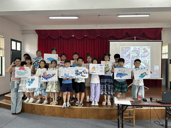 在浩瀚的海洋中,鲸鱼作为海洋生态系统的关键物种,正面临着栖息地破坏、海洋污染和过度捕捞等多重威胁。为了增强青少年保护鲸鱼的意识,倡导海洋生态保护,7月30日,陈华浦社区假日学校开展了与鲸共栖 守护蔚蓝”手抄报制作活动