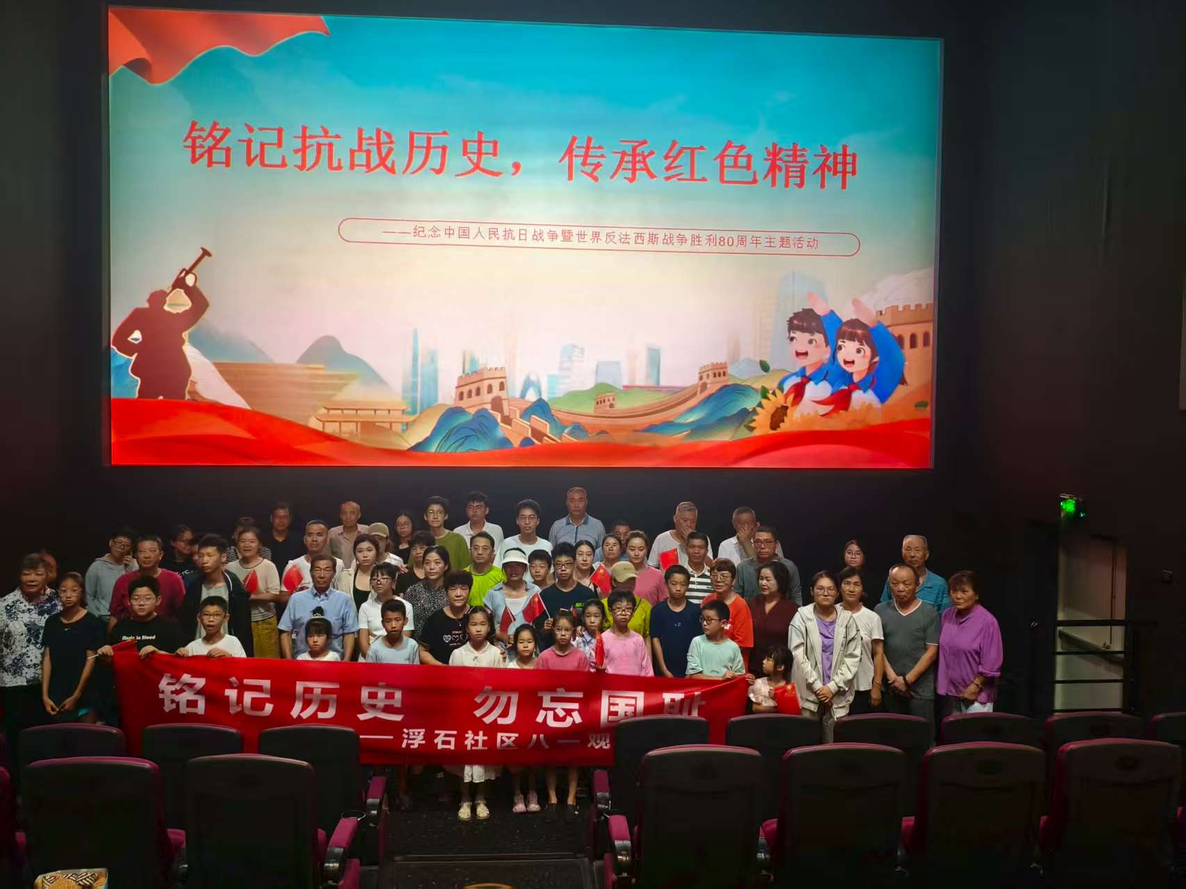 为纪念抗日战争胜利80周年,弘扬伟大抗战精神,传承红色基因8月1日,浮石社区关工委、浮石社区退役军人服务站联合举办了一场以“用影像铭刻历史,以微光点亮未来”为主题的红色观影活动,邀请了辖区内的未成年人和退役老兵共同参与,一同观看抗战电影《南京照相馆》,在光影交织中开启了一场跨越时空的精神对话。
