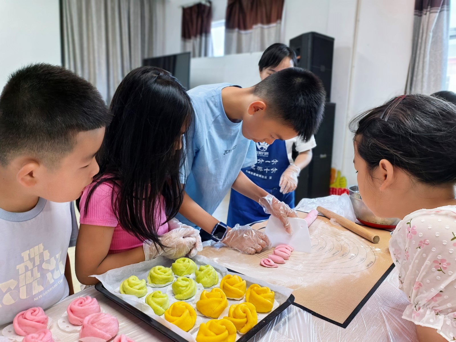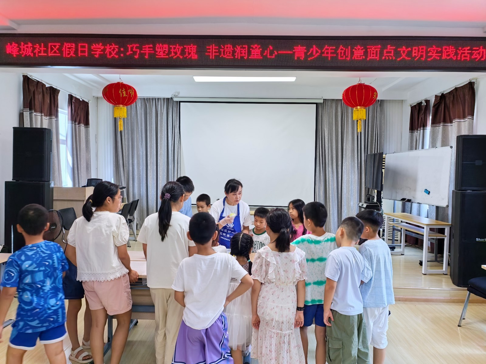 为传承中华面食文化,培养青少年动手能力,8月5日上午,峰城社区假日学校组织开展"花样馒头DIY"主题活动,20余名青少年在面点师指导下制作出寓意美好的玫瑰花馒头,体验非遗技艺的魅力。