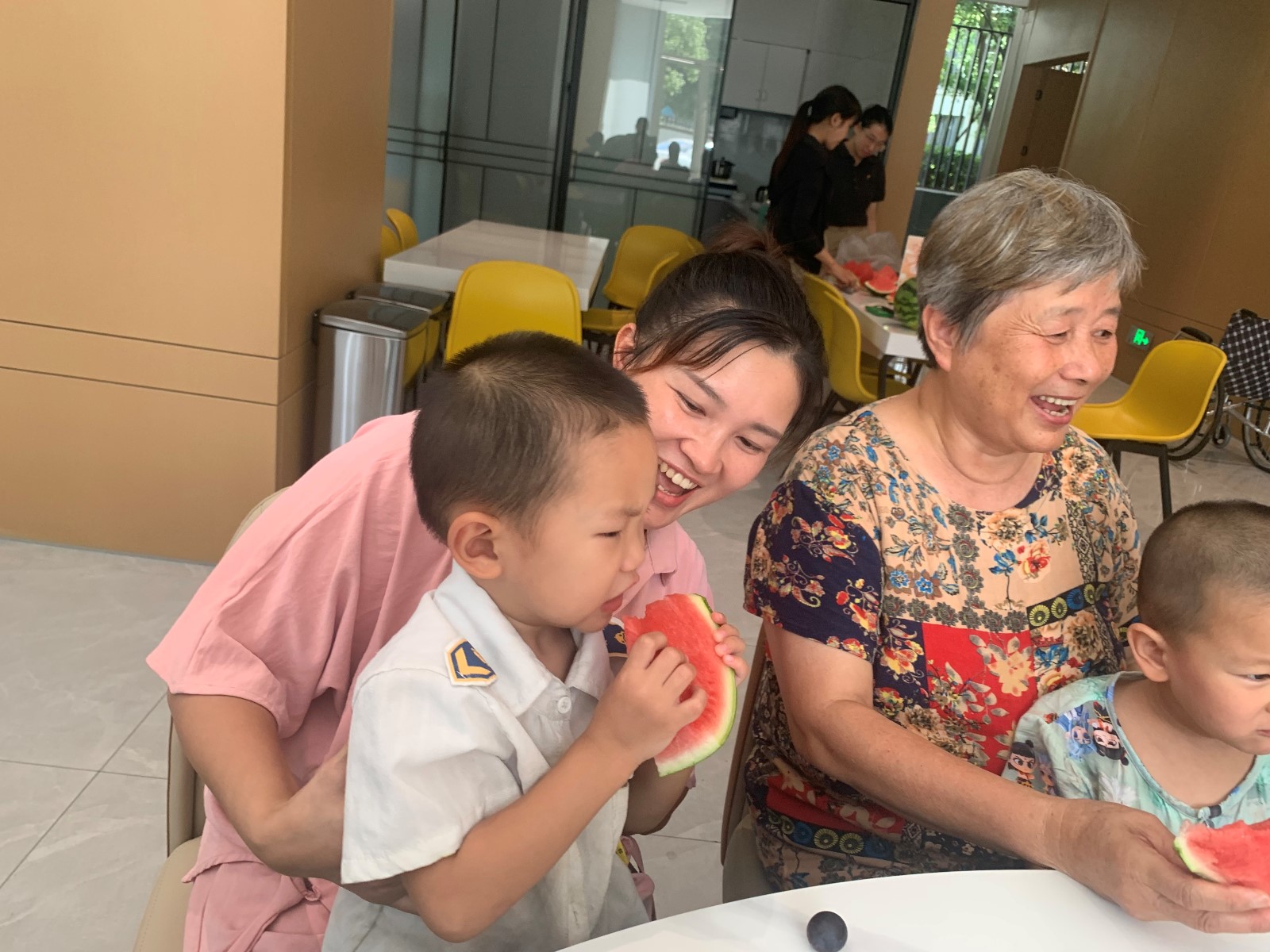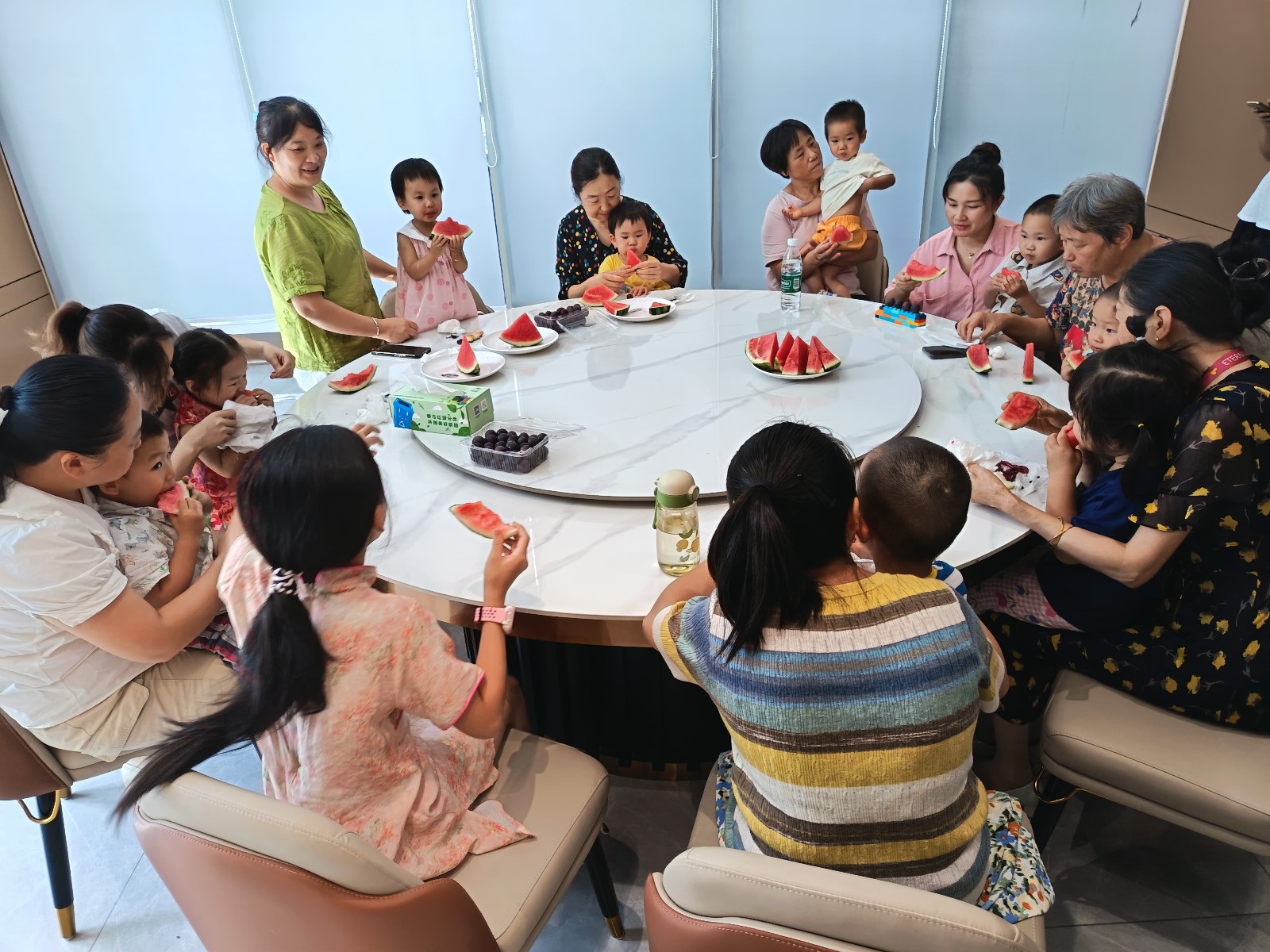 随后,现场气氛被啃西瓜大赛推向高潮。参赛家庭跃跃欲试,孩子们小脸写满兴奋,与父母并肩作战。随着一声令下,大小选手们立即投入战斗,清脆的啃咬声此起彼伏,果汁四溢,欢声笑语不断。