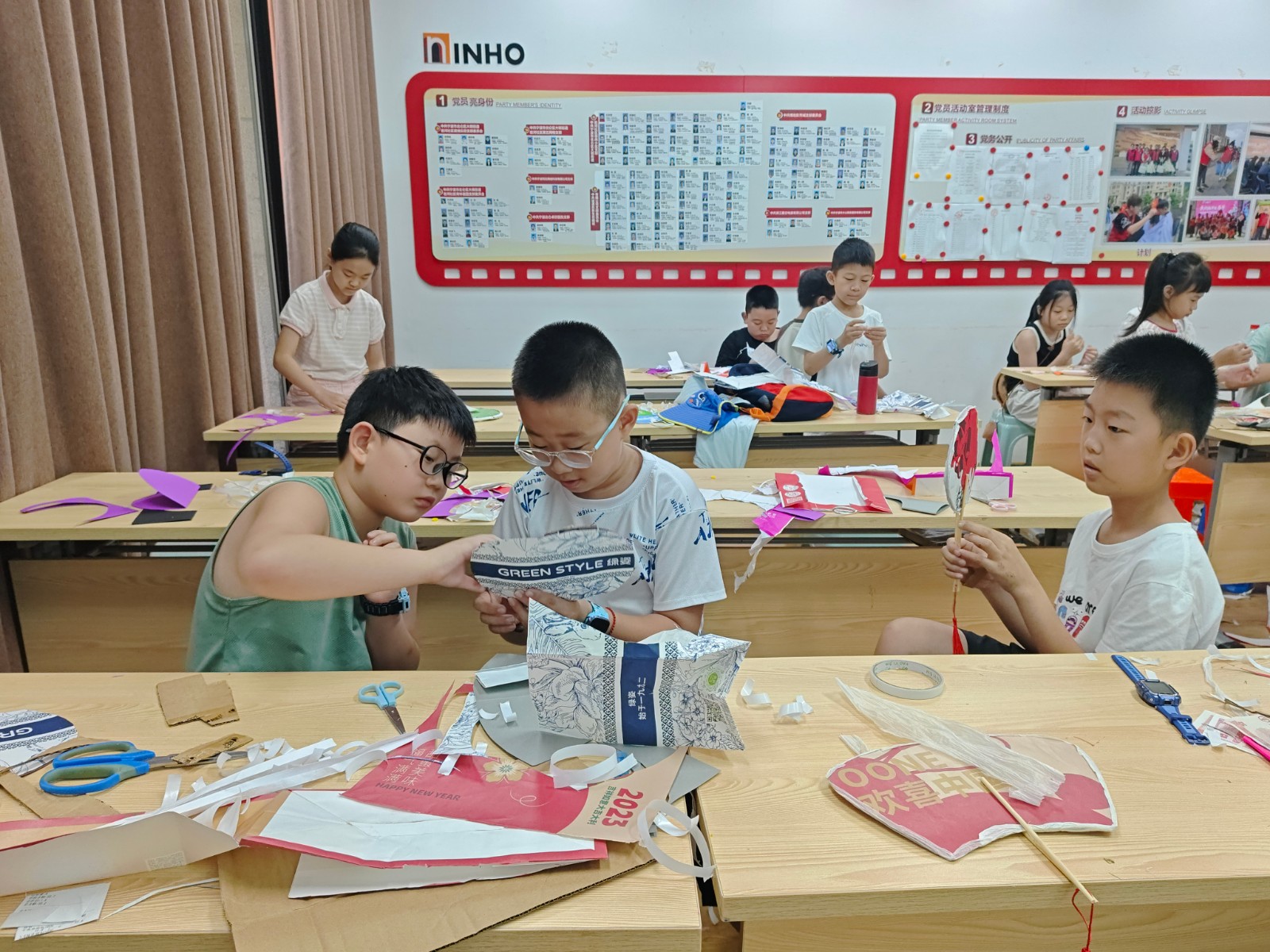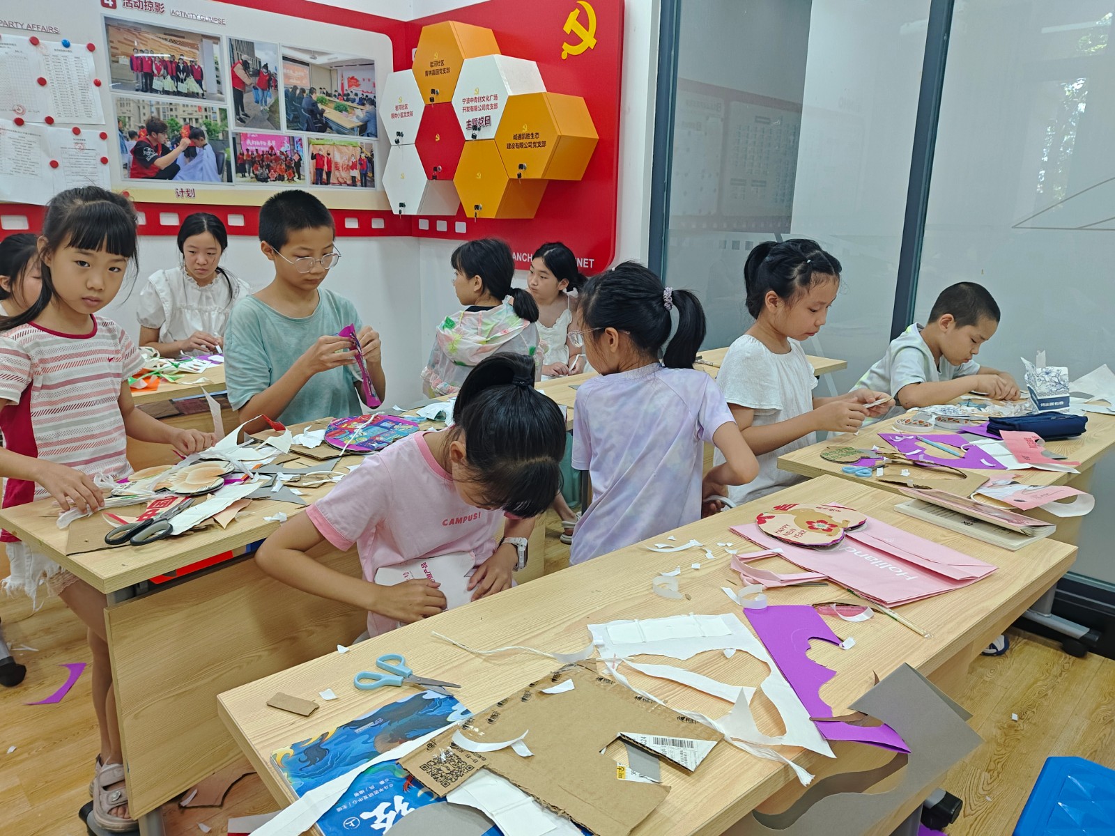 “我的扇子是用上周喝过的奶茶袋子做的,没想到废品能变成这么漂亮的工艺品,以后喝完奶茶一定要把袋子留下来!”假日学校学员袁宇哲举着作品自豪地说。