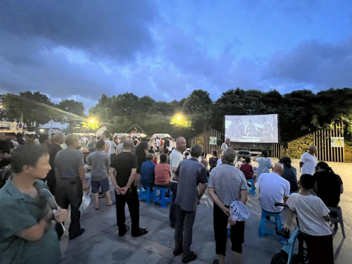 在市集的另一角,电影幕布悄然升起,片头曲也随之响起,露天电影的放映为夜晚增添了不少活力。大人小孩聚集起来体会童年的快乐回忆。这场专为社区居民定制的夏日纳凉派对逐渐落下帷幕,正如万景山社区党总支书记楼妍伶所说:“我们不仅要送服务到门口,更要让邻里温情在夏夜里自然生长。未来,我们也会不断丰富社区嵌入式服务内容,用更高质量、更实举措,全力实现社区服务与群众幸福的双向奔赴。