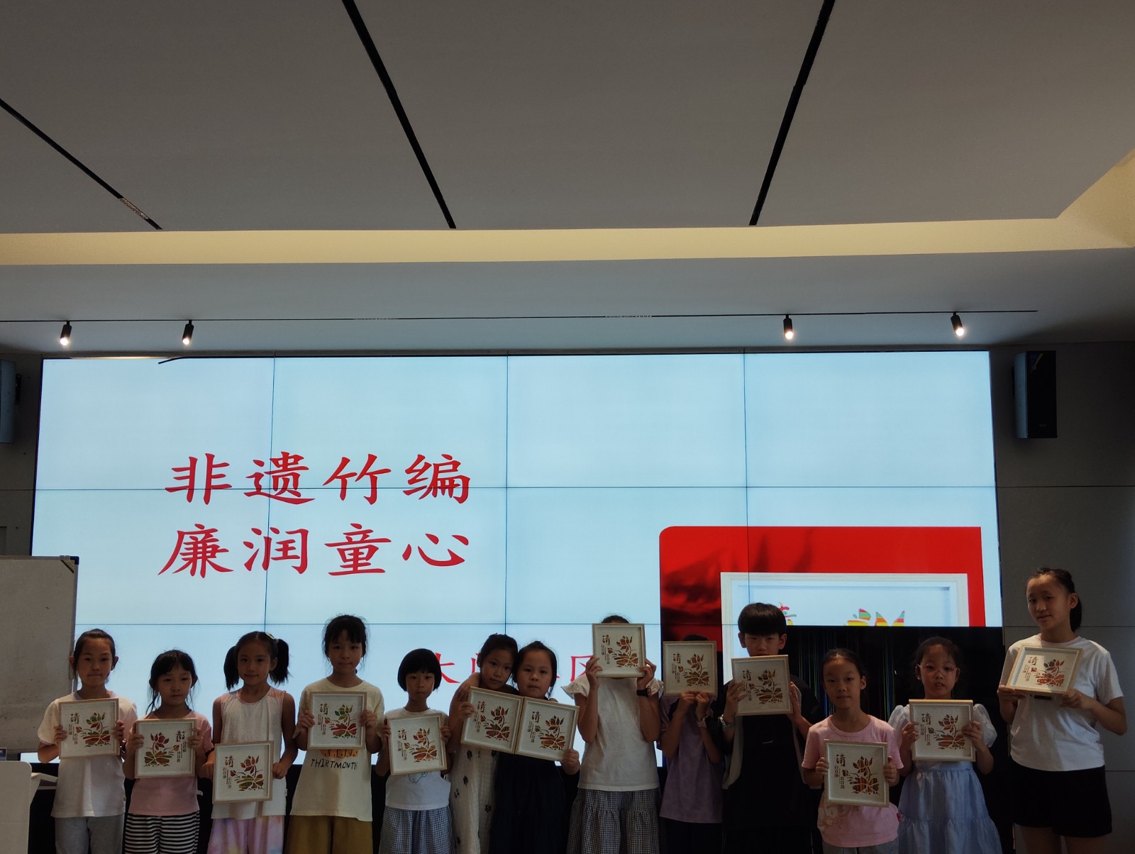 活动伊始,孩子们对竹编画都充满了好奇。在老师讲解了竹编画的制作方法和技巧后,他们迫不及待地开始了创作。在老师和志愿者的指导下,孩子们用五颜六色的竹编条整齐的拼到一起,一幅幅廉洁竹编画展现出独特的魅力。竹编画作为一种创意十足的手工艺品,不仅锻炼了孩子们的动手能力,还激发了他们的想象力。经过孩子们的巧手,一幅幅汇聚着廉洁文化的画作呈现在眼前。这些作品不仅展示了孩子们的天真与创意,也传递了一种廉洁、清正的社会风尚。