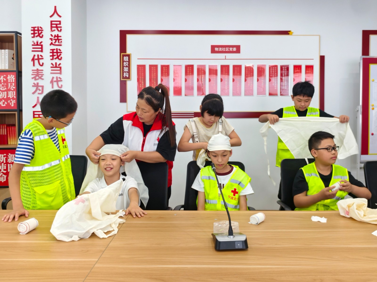819日,北仑区霞浦街道物流工业社区党群服务中心、霞浦成人学校、北仑区红十字志愿服务指导中心联合开展“救护小卫士”应急救护培训活动,30名卡娃(集卡司机子女)在专业指导下完成防溺水、心肺复苏、创伤包扎、海姆立克急救法等救护技能的学习与实践演练。