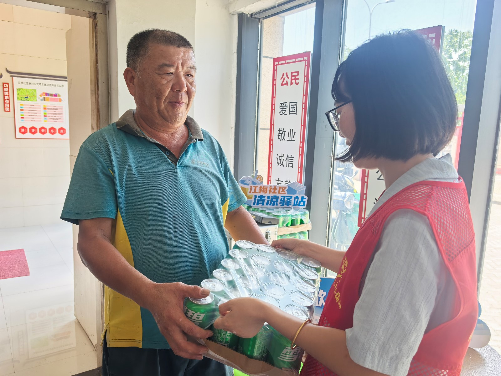 为提供持续性服务,江梅社区特别设立“24小时不打烊”清凉驿站,配备矿泉水、自助充电设备、应急医药箱等便民设施,确保新就业群体随时可享受休息、补水、应急救助等服务,真正实现“渴了能喝水、热了能乘凉、累了能歇脚”。