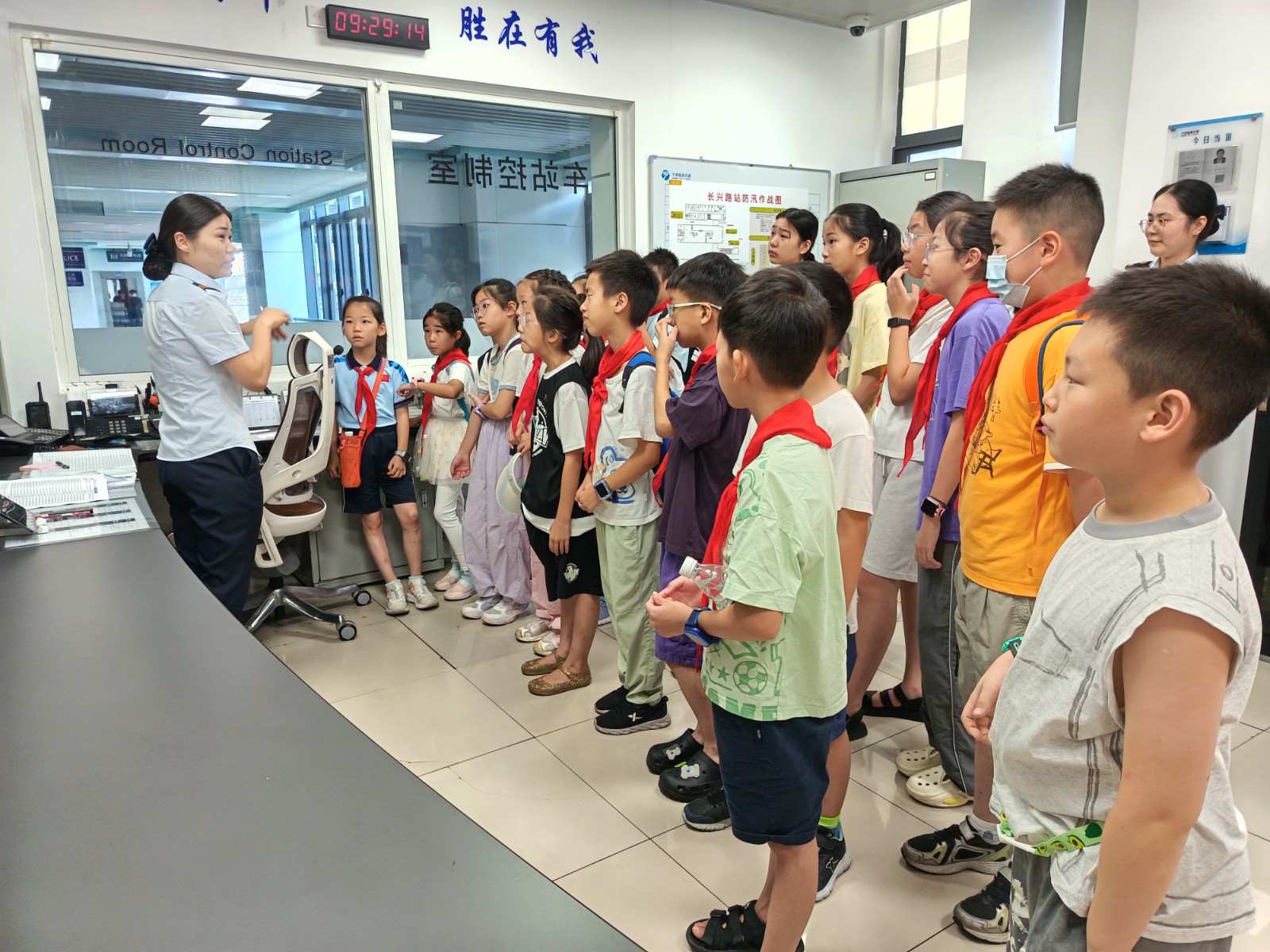 研学的首站,大家踏入了长兴路站地铁站的轨道交通控制室。这里,宛如城市交通的神经中枢,是网格中保障安全与便捷的关键节点。工作人员化身“安全导师”,引领大家走进这个神秘而重要的空间。监控屏幕上,各种数据和画面如繁星般闪烁,列车运行的奥秘在此一一展现。屏幕上跳动的列车运行数据、实时更新的站台监控画面,让大家直观地感受到地铁运营的精密与严谨,仿佛看到了网格中交通脉络的有序跳动。