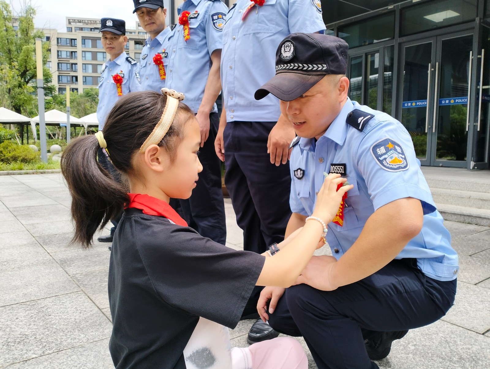 研学的第二站,青少年们来到了宁波市公安局轨道交通治安分局长兴路站派出所。一进派出所,大家就被展示的警用器械吸引住了,这些器械如同网格中的守护利器,守护着一方平安。警察“蜀黍”拿起各种器械,详细地介绍了它们的名称、用途和使用方法。从防弹头盔到防暴盾牌,青少年们听得津津有味,还亲自上手体验了一番,过了一把“小警察”的瘾,仿佛成为了网格安全的小卫士。