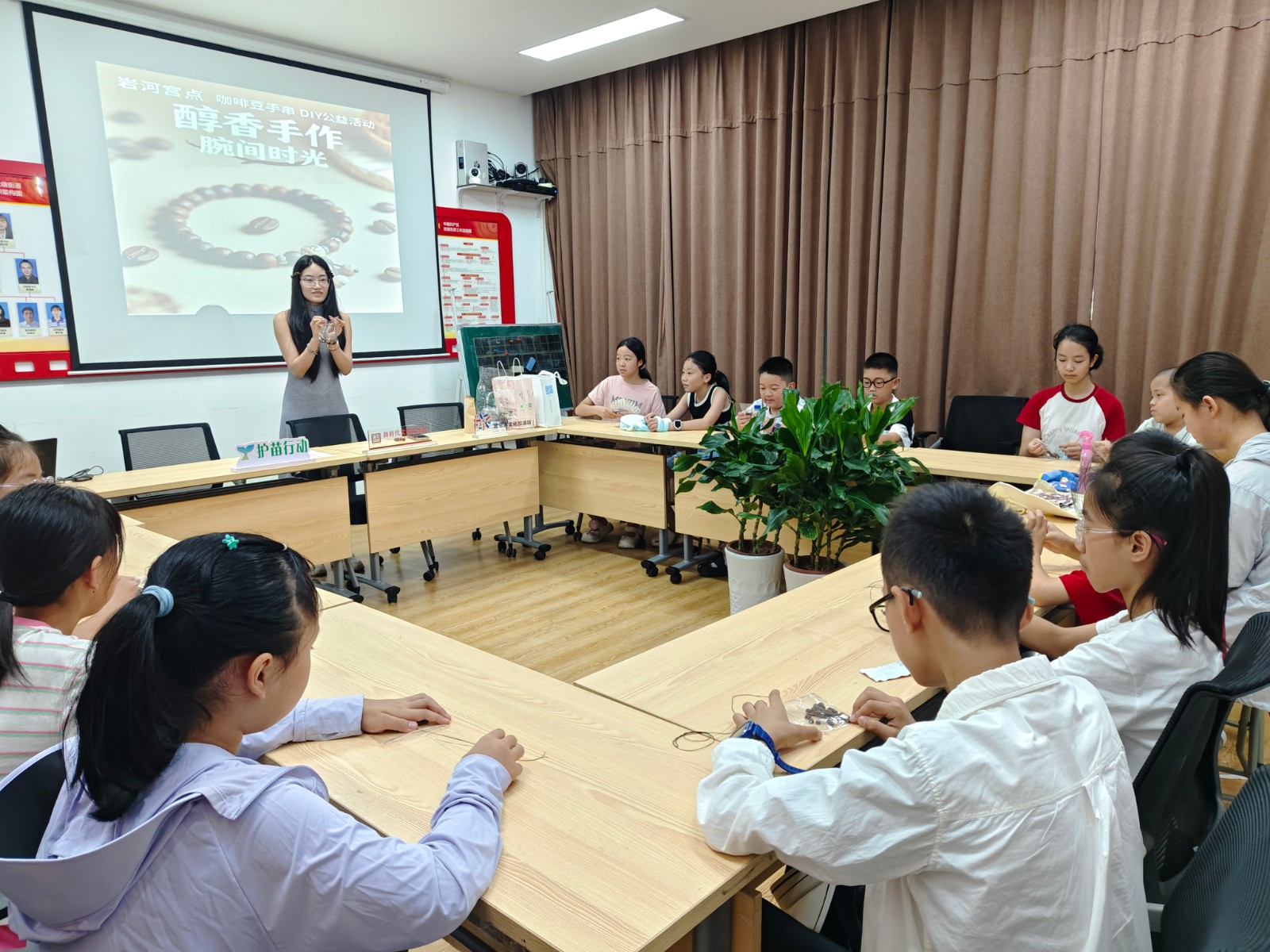 岩河社区:开展“豆趣时光 串缀童真”咖啡豆手串制作活动