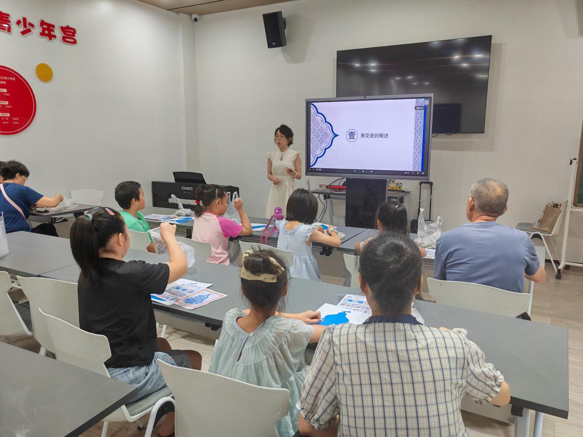 一块块零散的拼贴材料,在协作下慢合拢:奔腾的骏马、翩跹的蝴蝶、饱满的葫芦、雅致的扇子,在青白底色上构成了一幅灵动的画面,又藏着孩子气的创意。“孩子投入得让我意外。”一位奶奶端详着孩子的作品,笑意满溢。活动负责人说,不追求统一,反而让每个家庭的创意尽情绽放。