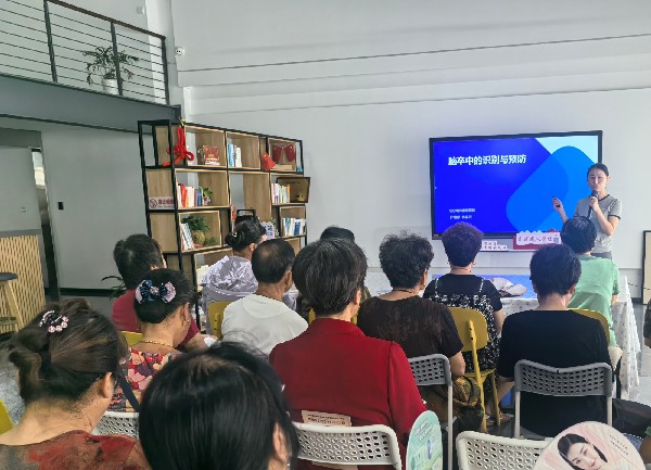 高血压、糖尿病、高血脂患者,以及长期吸烟、饮酒、缺乏运动的人群,都是脑卒中的高危人群,一定要定期体检,控制基础疾病。 讲座中,林护用通俗易懂的语言,生动细致地介绍了脑卒中的常见症状和发病原理,围绕什么是脑卒中、脑卒中的危险因素及健康生活方式等核心知识进行了解读。师着重强调,脑卒中发病急、进展快,黄金治疗时间极短,一旦错过,不仅可能留下肢体残疾、语言障碍等严重后遗症,更会直接危及生命。因此,她反复提醒居民:一定要牢记早期识别方法,做到早发现、早诊断、早治疗,同时定期进行脑卒中筛查,不给疾病可乘之机。”“以前总觉得脑卒中离自己很远,听了讲座才知道,很多生活习惯都会增加发病风险,以后要少盐少糖,多运动,定期测血压。居民刘阿姨听完讲座后,由衷感慨道。