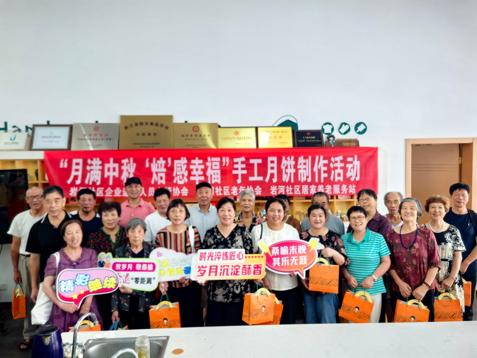 9月11日上午,桂语坊内充满了欢声笑语,一场以“月满中秋 ‘焙’感幸福”为主题的手工蛋黄酥制作活动正在这里温情上演,岩河社区30余名企退人员、老年协会成员齐聚一堂,提前共度中秋团圆佳节。