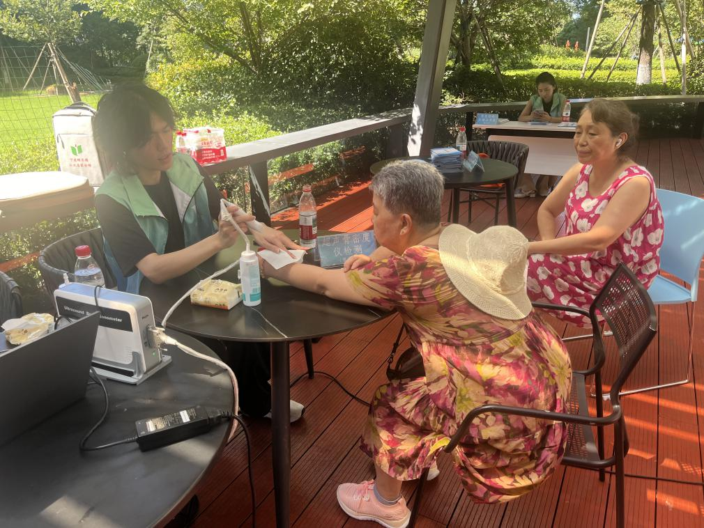 活动期间,来自第一医院的中医专家为居民提供了细致的骨密度检测服务。社区网格员全程协调保障,协助居民有序排队、登记信息。专家们逐一耐心地为居民解读检测报告,解答关于骨骼保健的各类疑问,并结合个体情况,给出科学合理的养生建议,帮助大家更好地理解自身骨骼健康状况。