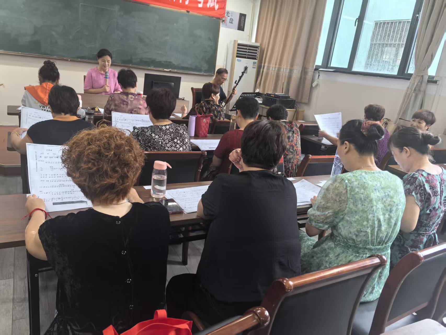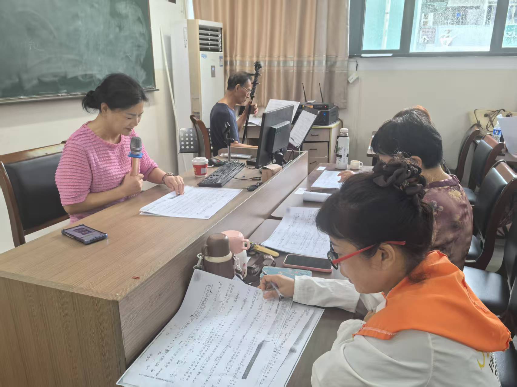 918日下午陆埠成校一楼教室里30多名来自各村居委的越剧爱好者正在老师的指导下练唱越剧血手印》。这是本学期的第一节课,老师和学员们来得都格外早。